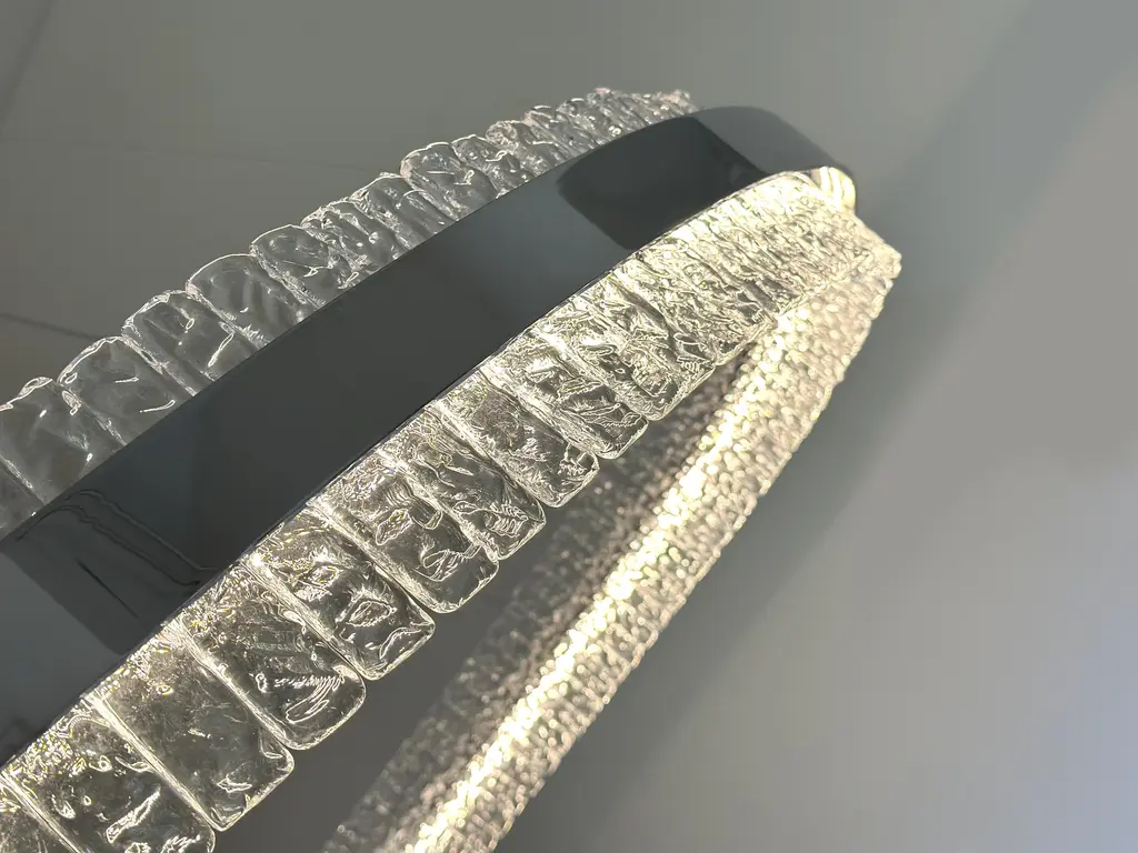 Murano Glass "Ice" Chandelier Hammered Clear Glass In Polish Kromo Ring With Strip Led