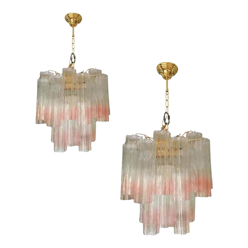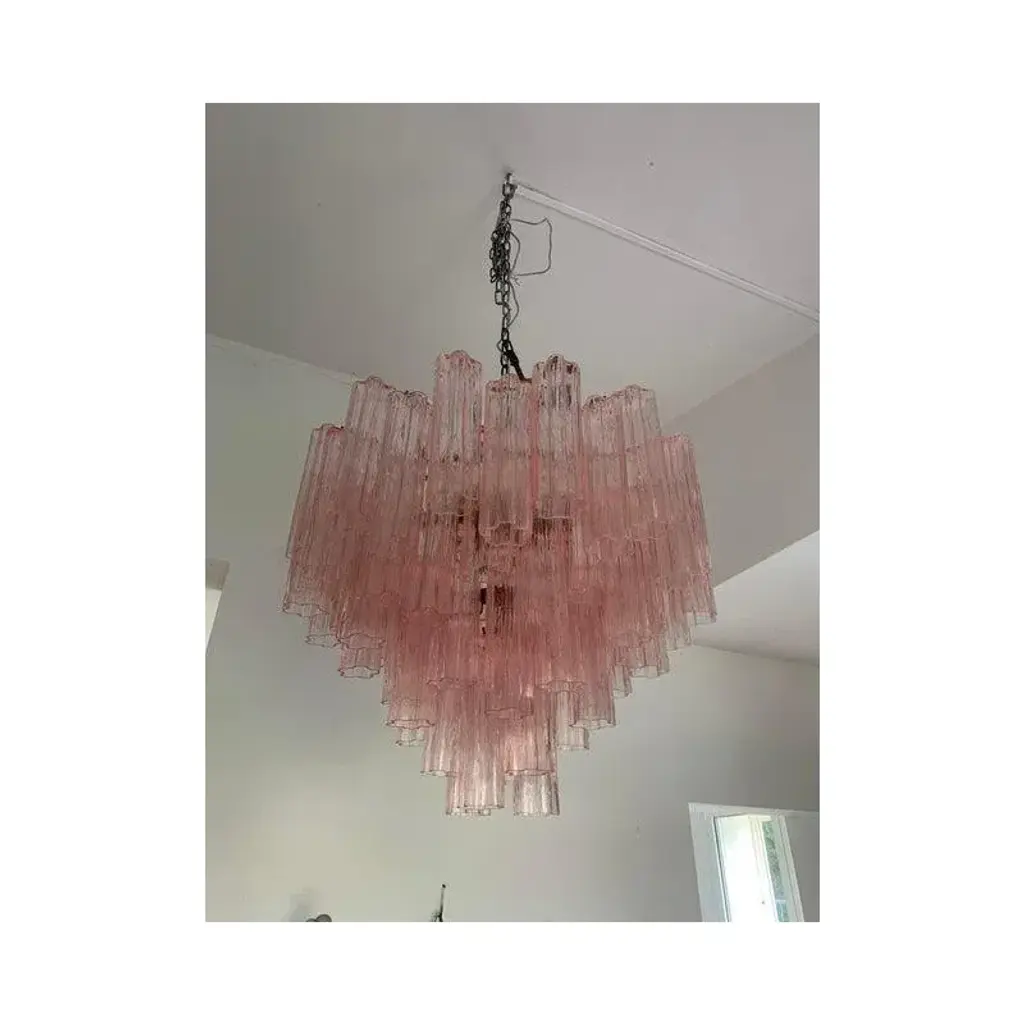 Impressive Murano Glass Sputnik Chandelier like mazzega zuccheri venini barovier style Diameter 75 cm =29.5 ” Height 60 cm = 23.6” Murano glass pink color Metal frame brunito color bulbs not included lot of 2 or a pair of chandeliers Spare parts murano glass included Ship from Italy and the sputnik murano glass is wire for USA US Plug (up to 110V).