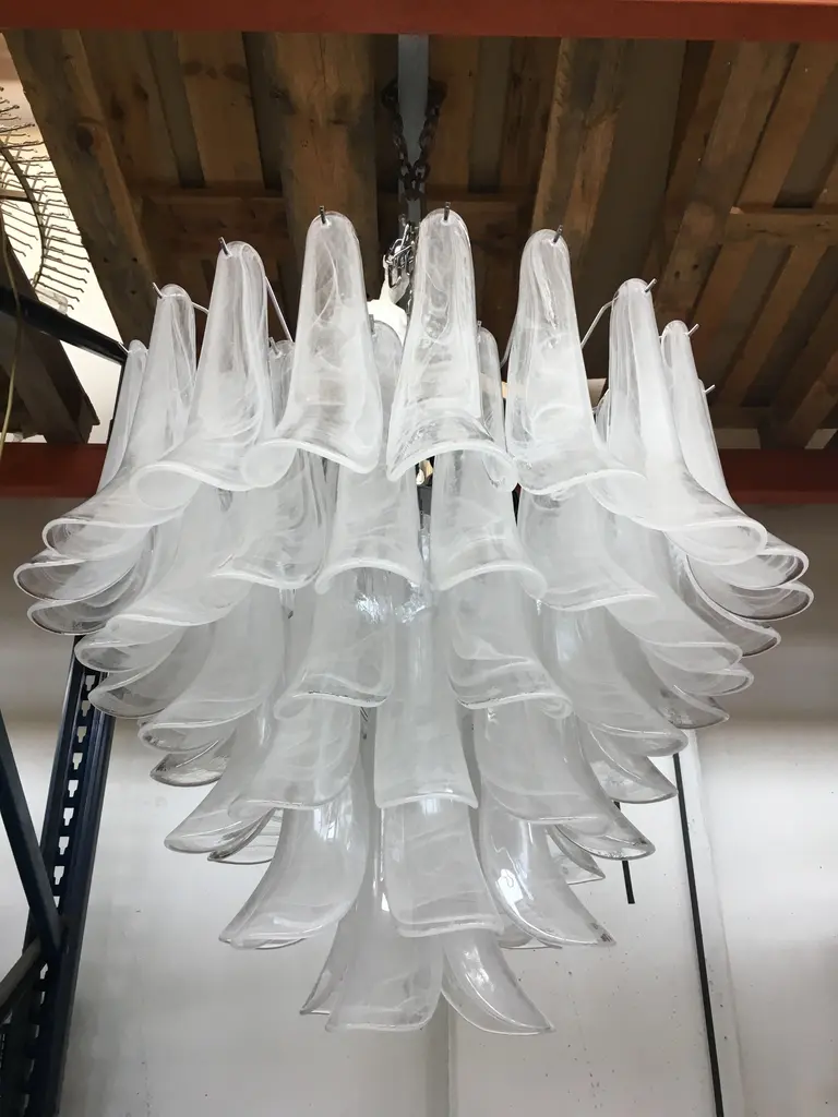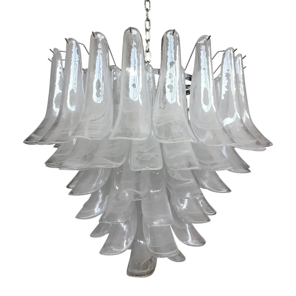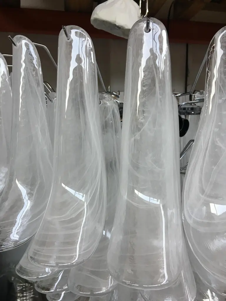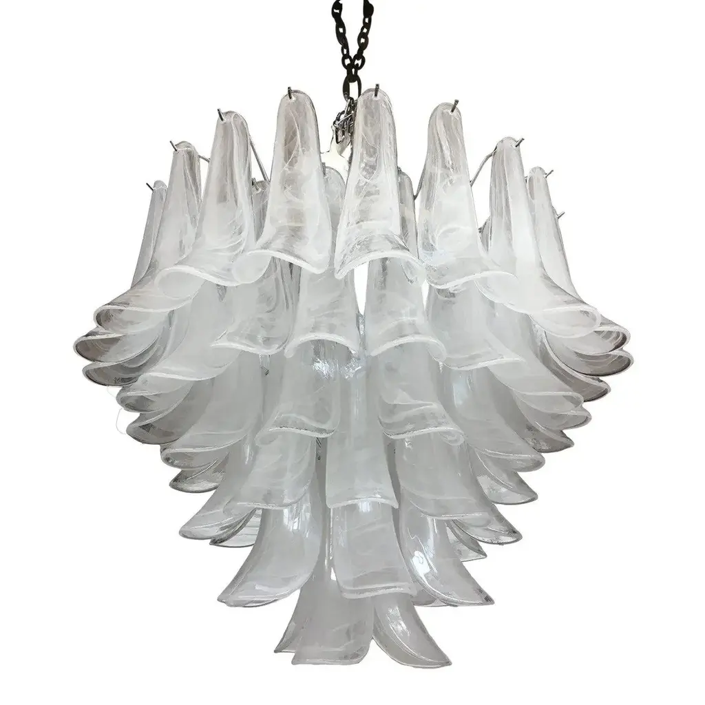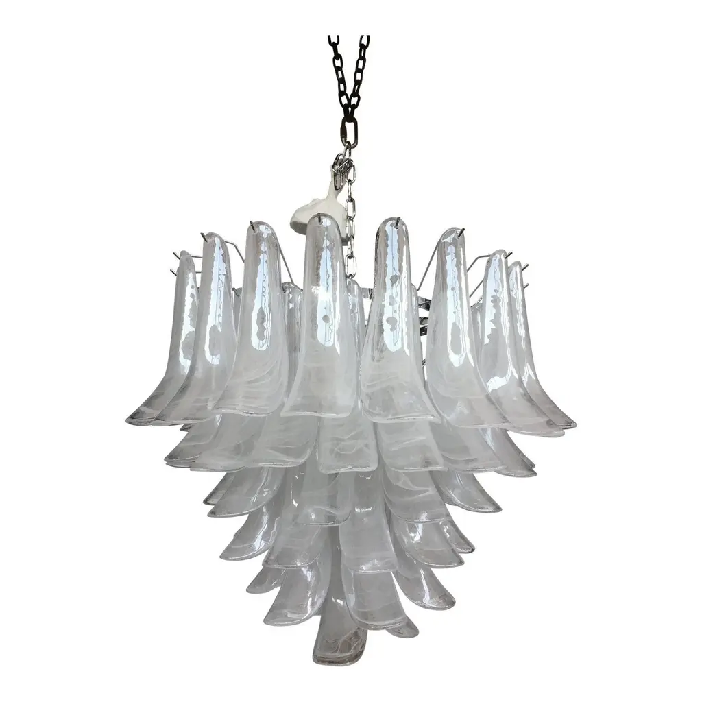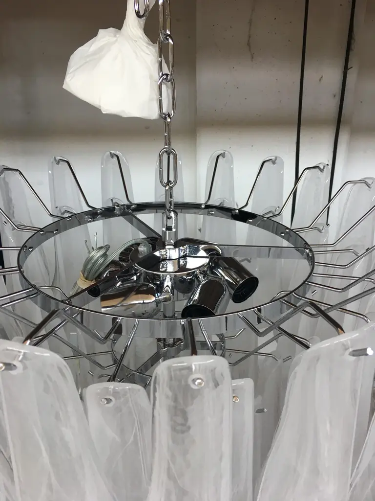 Contemporary Murano Glass ""sella"" chandelier with a kromo metal frame Selle in alabastro very very rare color Spare parts glass included. Diameter = 75 cm = 29.5"" height only chandelier 70 cm = 27.5"" Made in Murano - Italy US Plug (up to 110V).