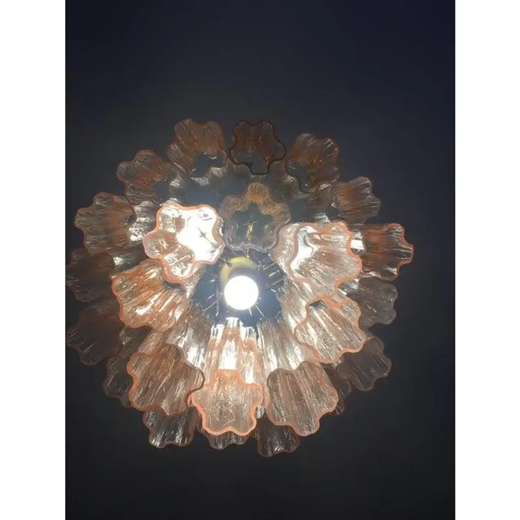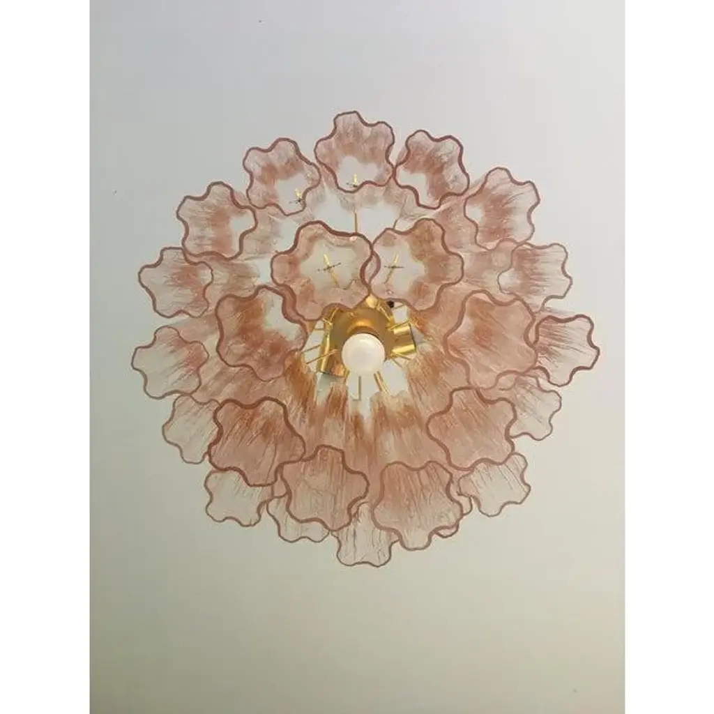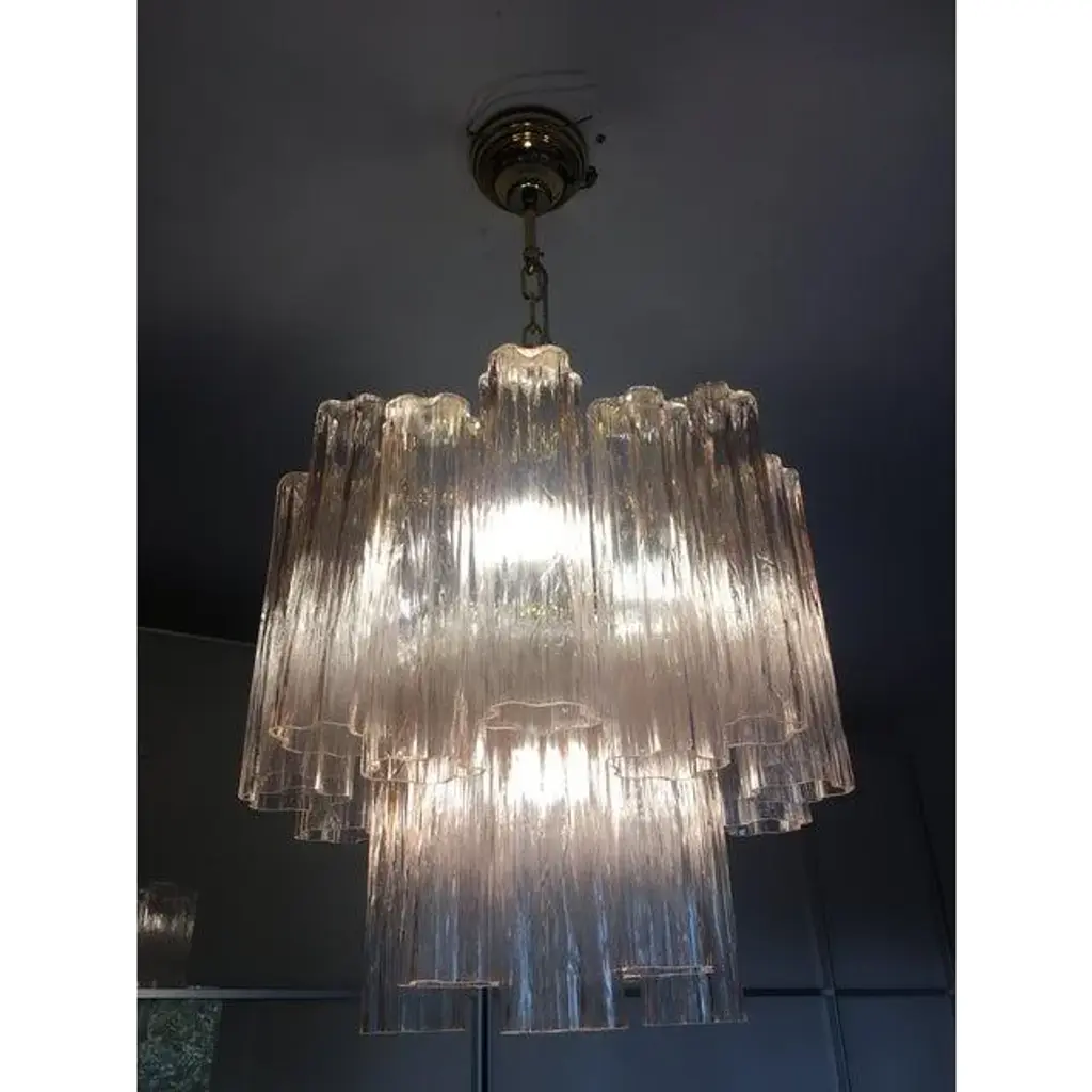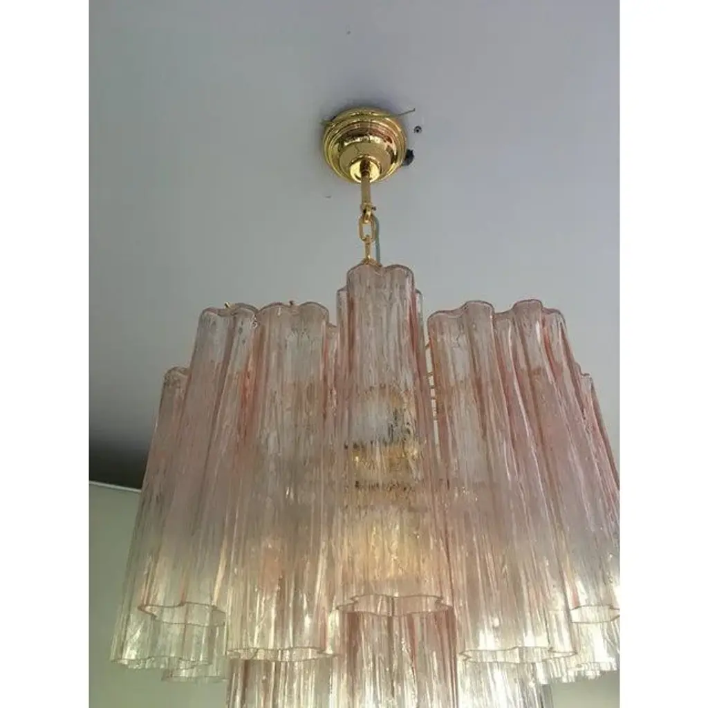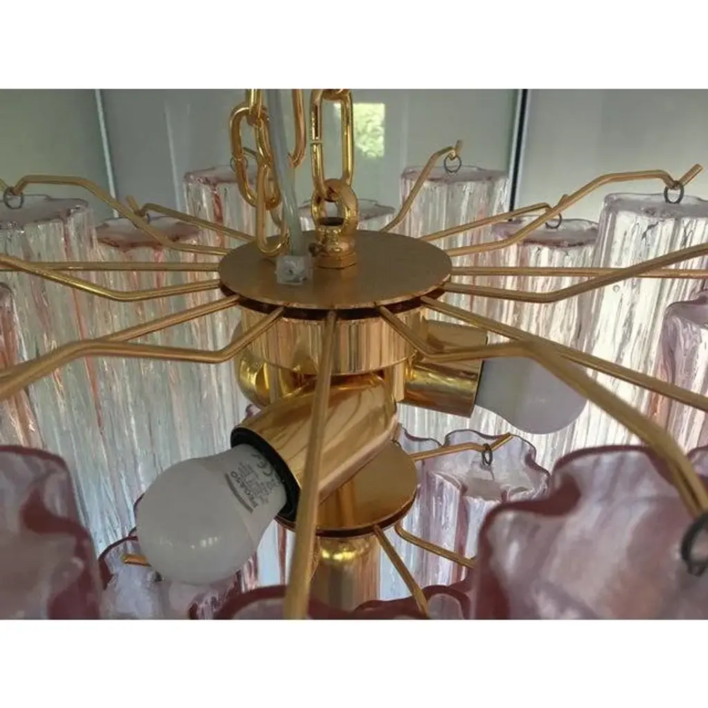 Contemporary Murano Glass "Tronchi" chandelier with a gold 24k metal frame. Very rare light pink Tronchi Murano glass painted pink color Spare parts glass included. Diameter = 19.7" Height only chandelier = 15.7" Chain 50 cm more ceiling metal cup = 19.7" Made in Murano - Italy Very rare light pink Tronchi Murano glass painted pink color