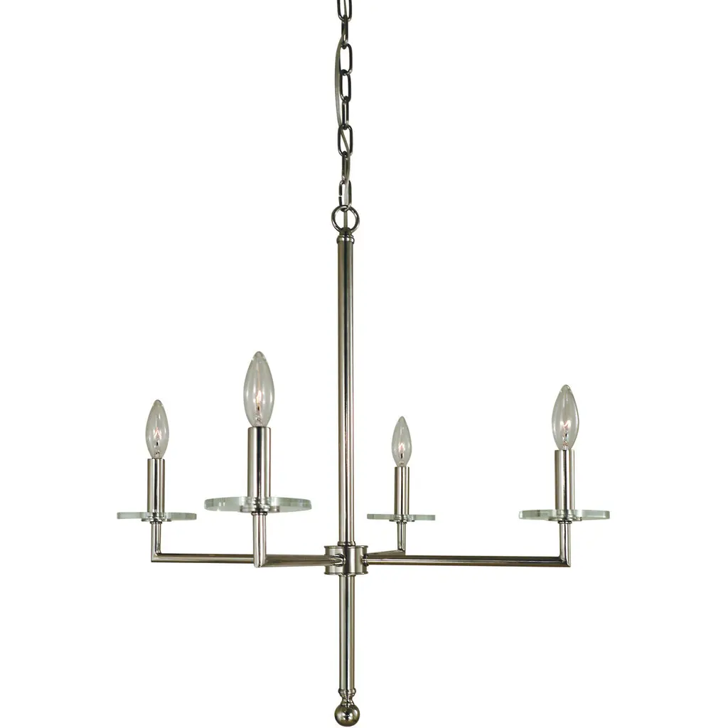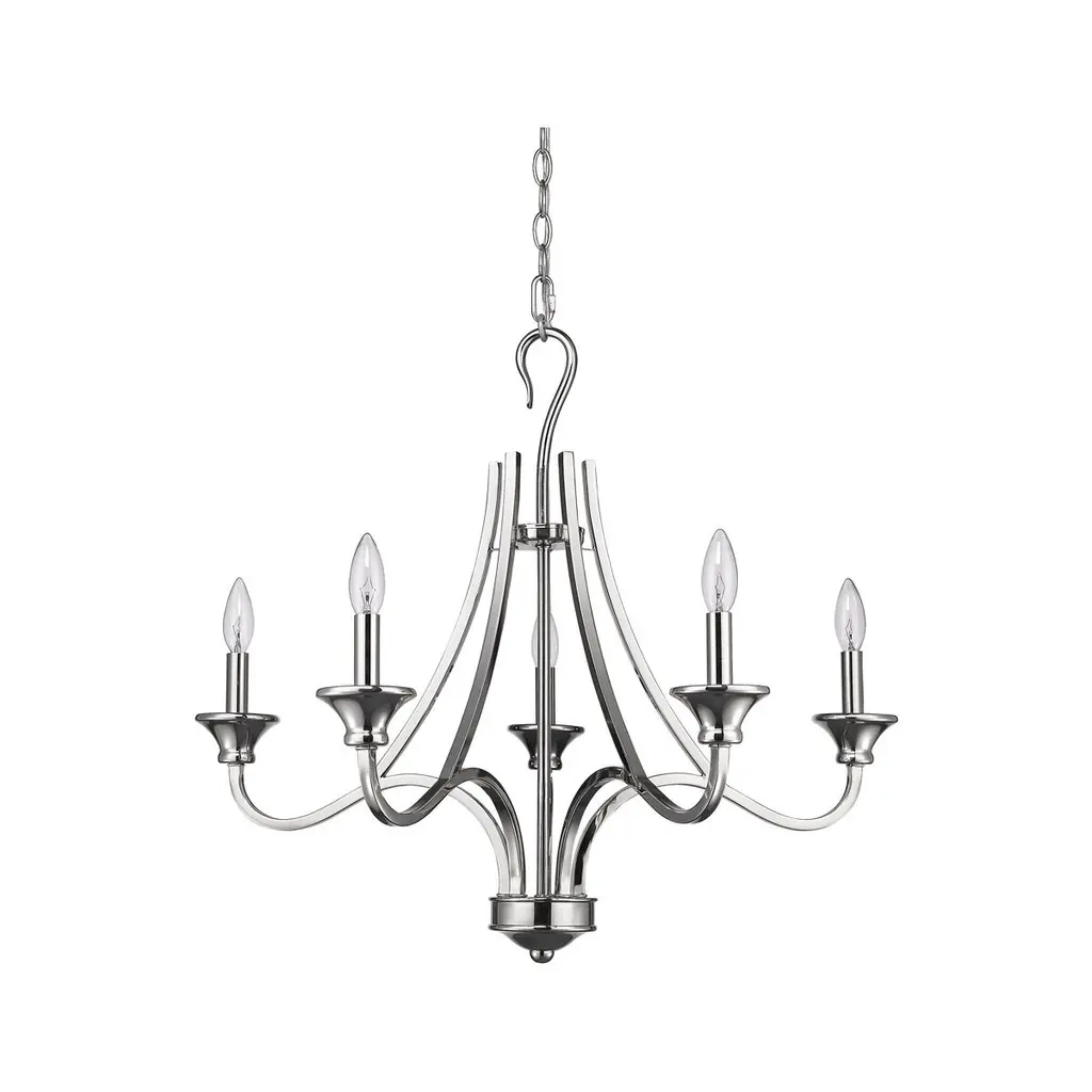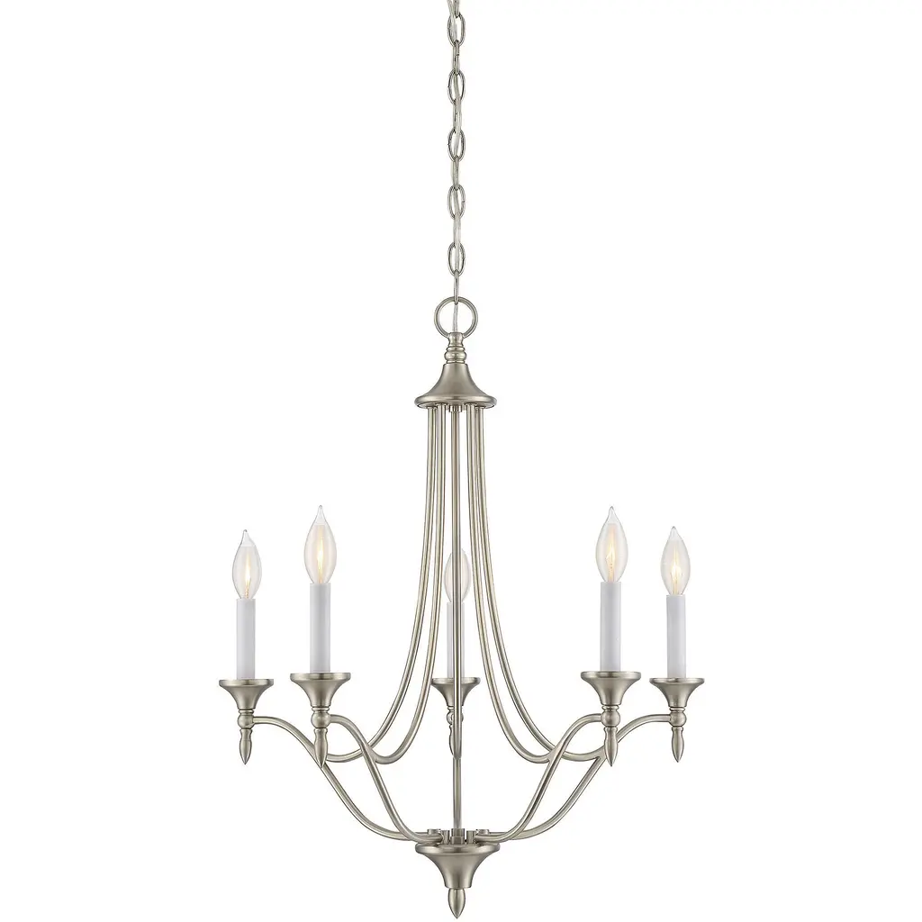 The Mykonos Chandelier from Visual Comfort Signature, formerly known as Visual Comfort, adds a vintage enhancement to indoor spaces. Well-suited to high ceilings, it uses a stepped, faceted canopy and long central chain to support an airy lower structure of swooping metal rods that extend from a central finial. Each arm sweeps down, out, and up, terminating in a stylized candelabra style lamp oriented upwards and in the open, enhancing its surroundings with a broad crown of bright light.