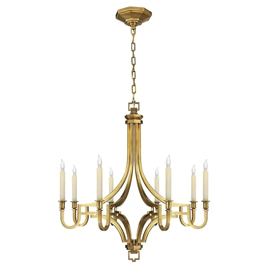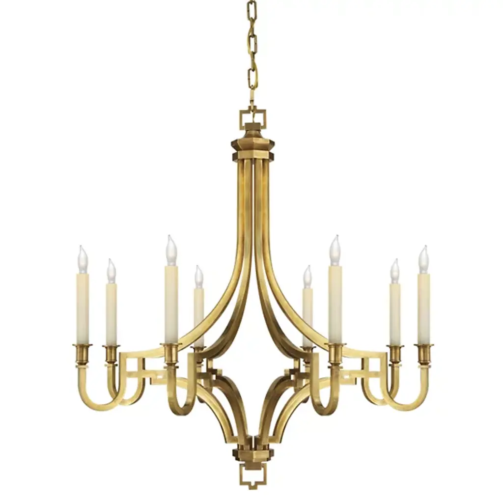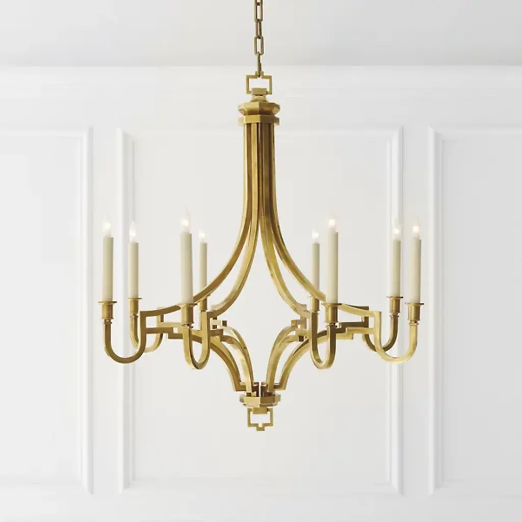 Seduction through repetition. The Mykonos Chandelier from Visual Comfort Signature, formerly known as Visual Comfort, pulls one closer with overflowing curves and heartfelt, candle-inspired lighting. Mid-century modern design comes calling in this chandelier’s simply stunning structure. Made from steel, the main structure produces sweeping curves that mirror each other for a beautiful tapering silhouette. The arms swing out tightly with vintage bobeche accents. Speaking of throwback, the tubular lamp holders combine with candelabra bulbs to create a charming candle display. This display delivers a bright, gripping aura.
