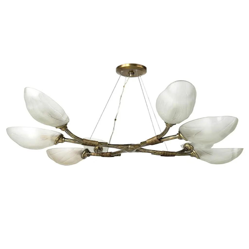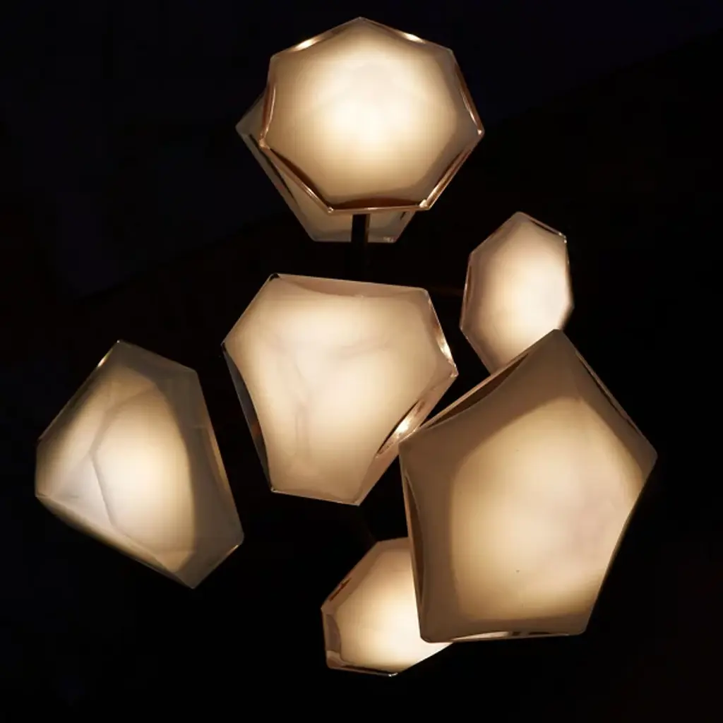 An evocation of nature. The Myriad Vertical Chandelier from Gabriel Scott features a blend of sharp, articulated arms with soft and reflexive light for an arboreal aesthetic. The design was inspired by bioluminescence, and the result is a fixture that disperses warm light through double-down glass shades, each pivoting at the tips of an asymmetric system. Expert craftsman meets clever engineering in this striking and elemental fixture that elevates whatever space it’s in.