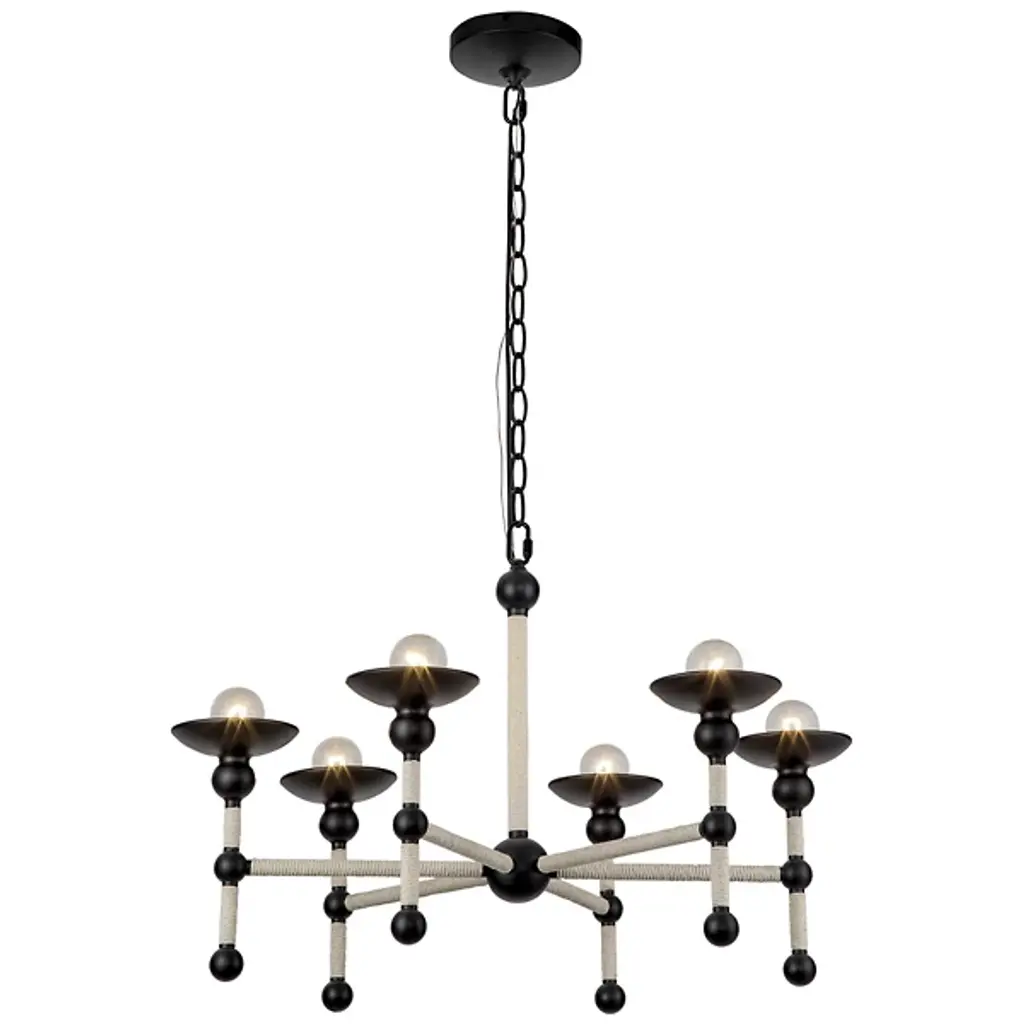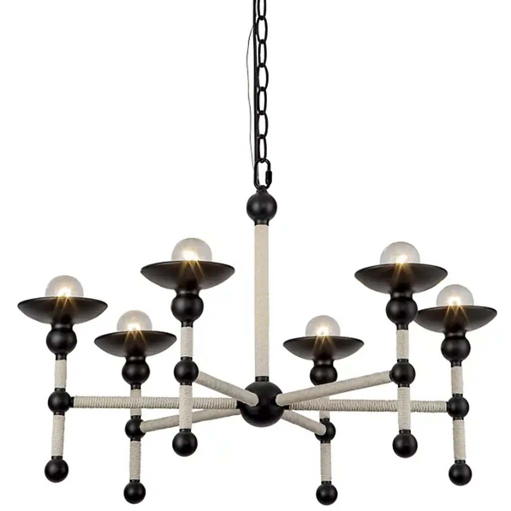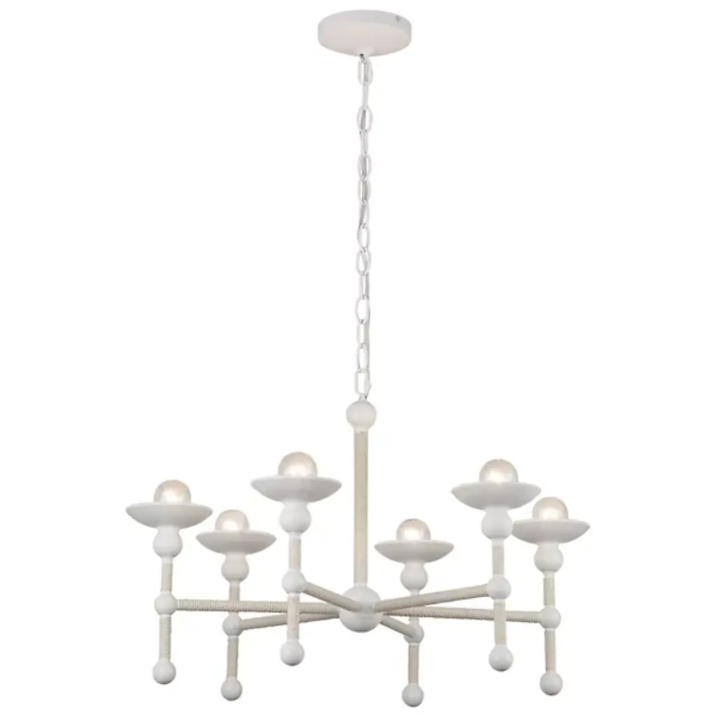 The Nadine Chandelier from Alora Lighting features bobeches crowned by clear glass globes illuminated by bright LEDs. This candelabra-style chandelier is adorned with natural corn fiber rope, giving it a seaside vibe that complements its transitional aesthetic. It is composed of durable steel and is secured overhead through attachment to a linked chain and a ceiling canopy. Effortlessly adjust the brightness level by pairing Nadine with a separately sold ELV dimmer.