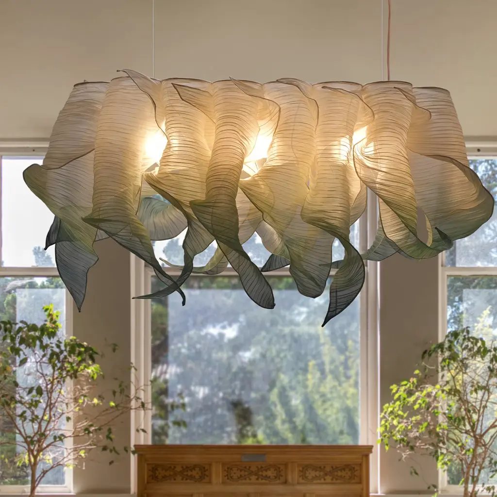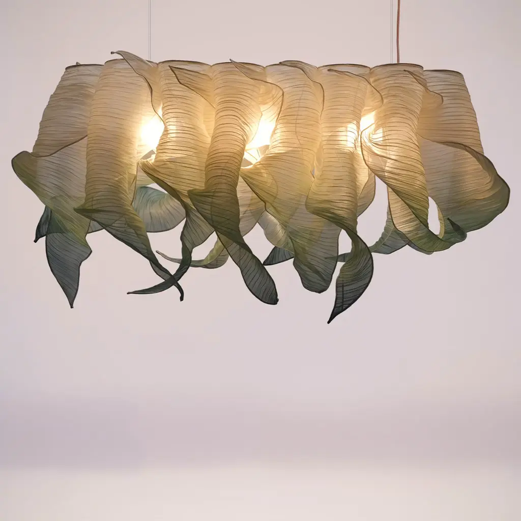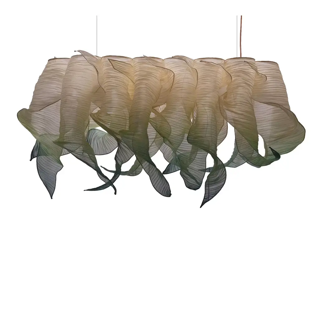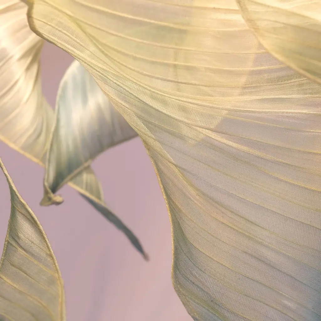 A captivating light fixture that will create a suggestive ambiance in any interior decor, the Nebula Lamp is named after and inspired by the interstellar clouds of dust and gas. The voluminous shape reminiscent of spiral nebulae shape is carefully constructed using Banaca (banana-abaca), an extremely pliable organic fabric from banana leaves, hand-painted in seafoam green that can be reshaped to one's liking. This original design won the Salone Satellite special mention award during Milan Design Week 2019.