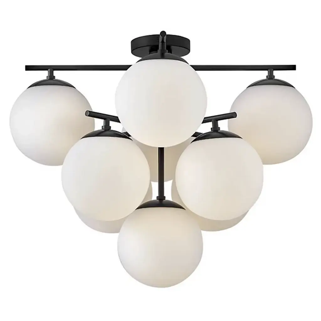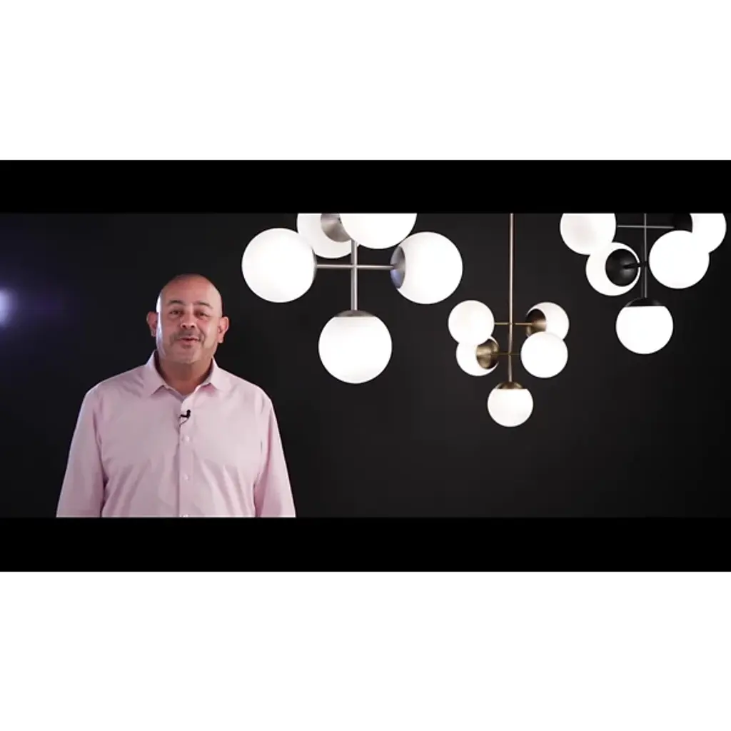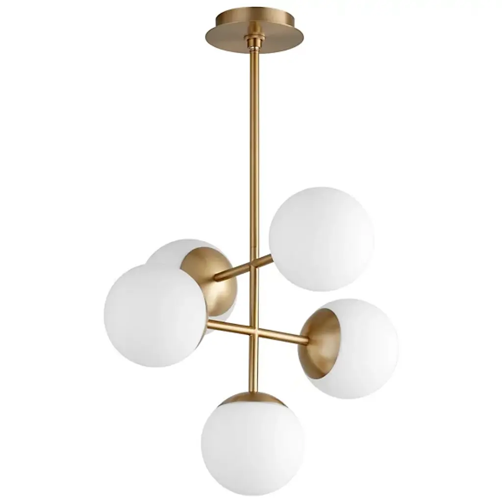 The Nebula LED Chandelier by Oxygen Lighting is a simple and striking take on a well-loved retro design. A single, metal down rod supports an array of smooth, spherical shades that are set at the ends of arms that branch out, creating a geometrical composition that is reminiscent of sputnik style fixtures. A beautiful finish dresses up the metal elements, lending the clean lines of this pendant a modern touch as it brings an evenly diffused layer of light to spaces.