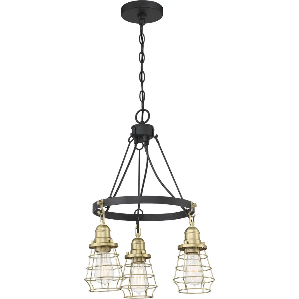 Neighborhood Thatcher 3 Light 18 Inch Flat Black/satin Brass Chandelier Ceiling Light In Flat Black And Satin Brass, Neighborhood Collection