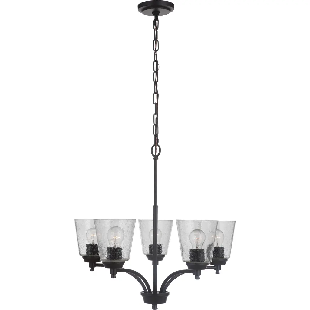 Neighborhood Tyler 5 Light 25 Inch Flat Black Chandelier Ceiling Light In Clear Seeded, Neighborhood Collection