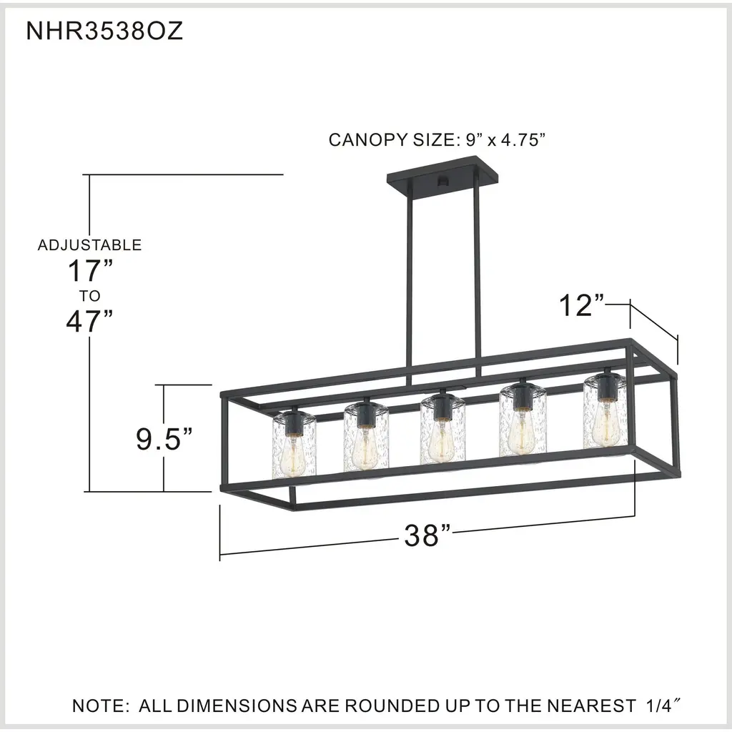 New Harbor 5 Light 38 Inch Old Bronze Linear Chandelier Ceiling Light