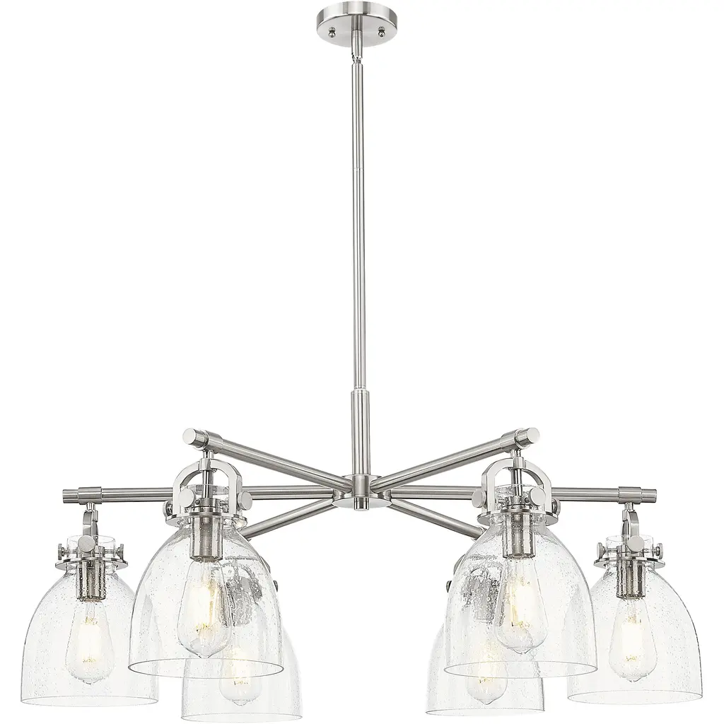 Newton Bell 6 Light 26 Inch Satin Nickel Chandelier Ceiling Light In Clear Glass