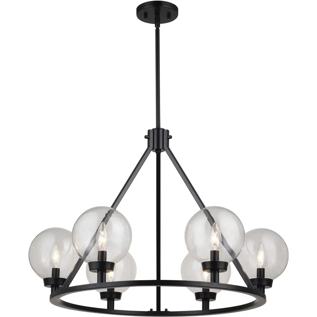 Newton Sphere 6 Light 26 Inch Matte Black Chandelier Ceiling Light In Clear Glass