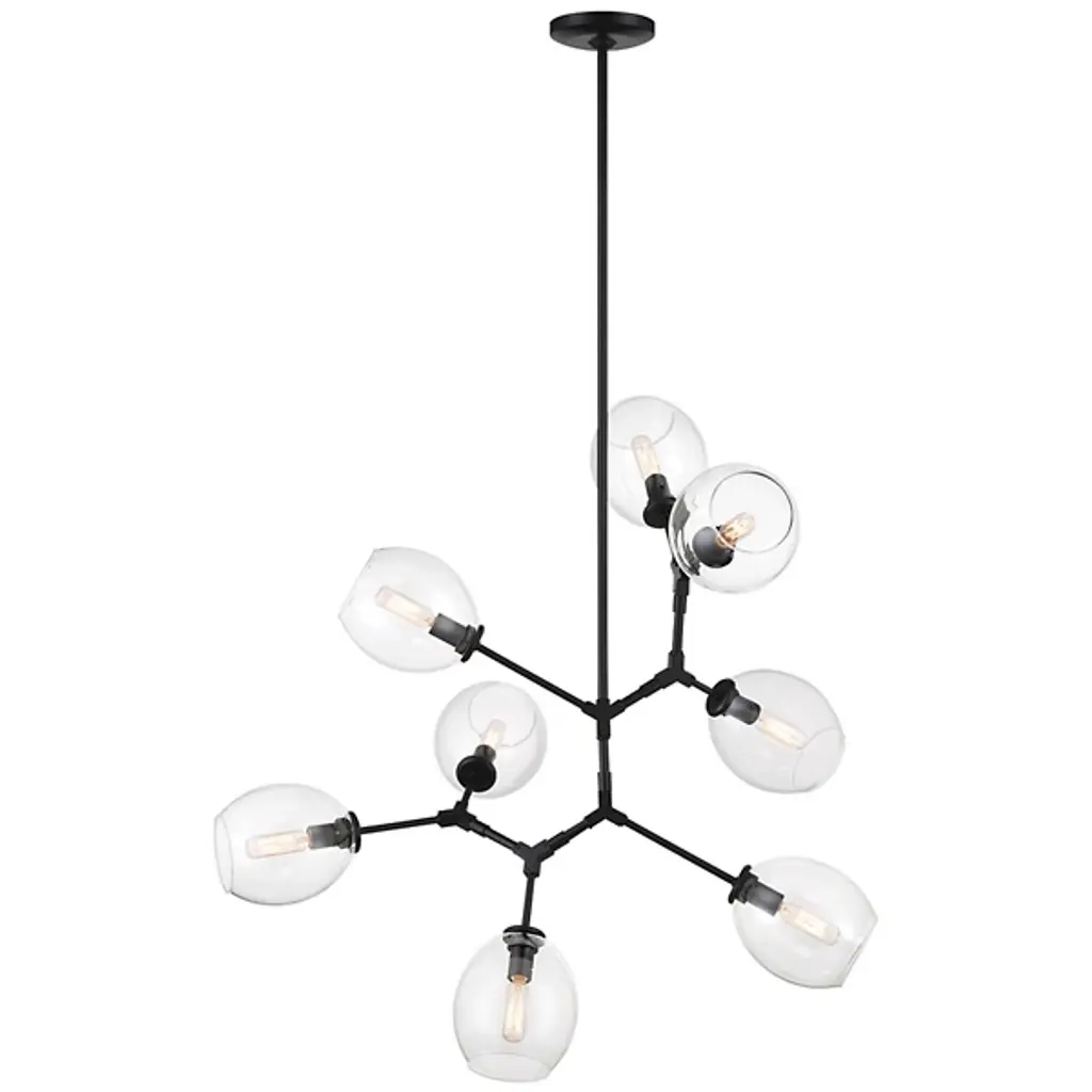 Give your living space an artistic aura with the finely designed Nexpo Chandelier by George Kovacs. An assemblage of lightbulbs is collected at the ends of steel arms. These arms are secured to a downrod connected to a disc-shaped ceiling canopy. Each bulb is beautifully enveloped by a rounded glass shade. This hanging furnishment facilitates the projection of vibrant light throughout your room. With multiple lights per single fixture, you can illuminate the space above your kitchen island or dining table with ease.
