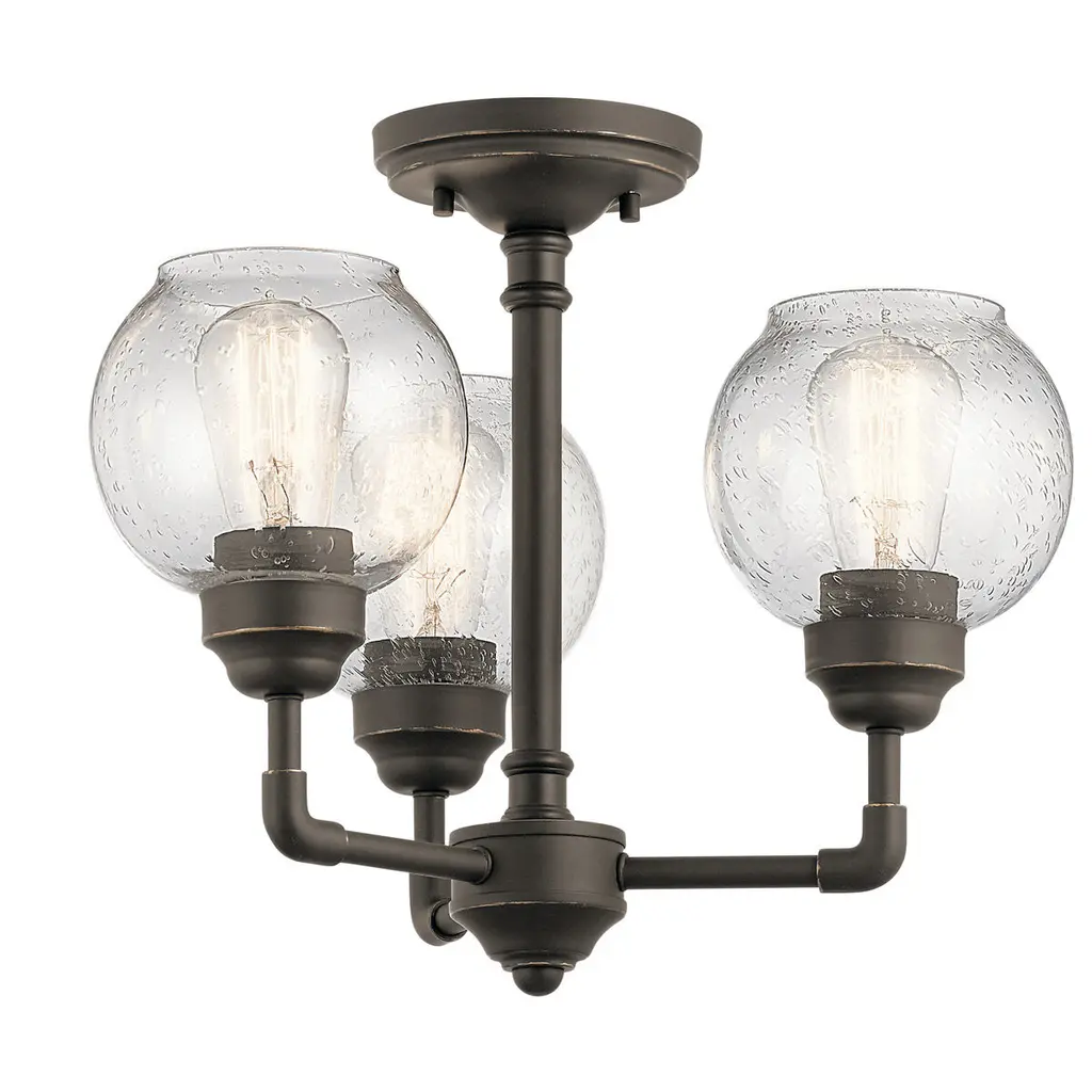 This Niles' Olde Bronze 3 light convertible mini chandelier/ semi flush ceiling light's globe style is reminiscent of fixtures found in historic metropolitan buildings, icons of the industrial era. Niles modernizes the look with clean lines for a look that works in any home.