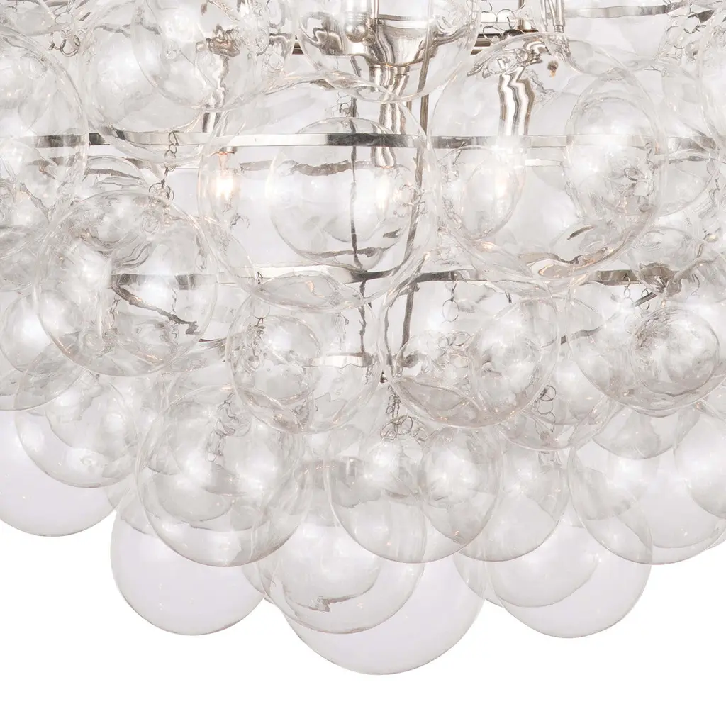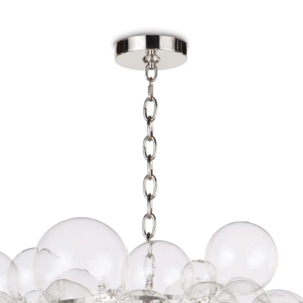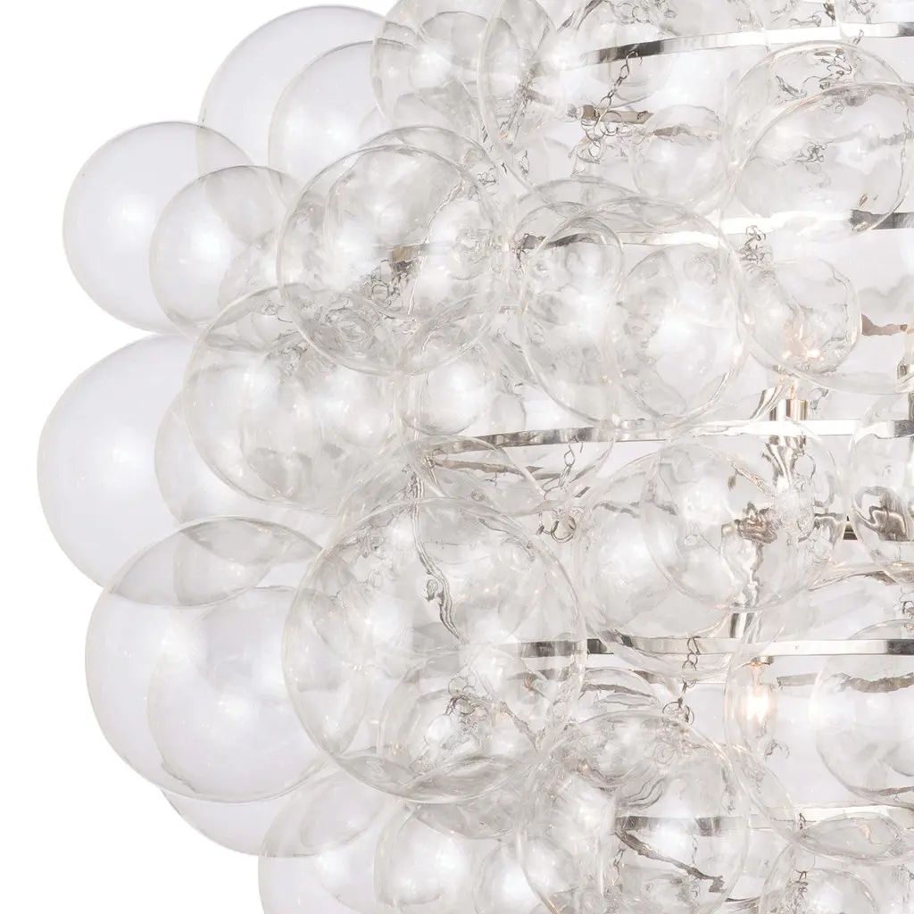 Nimbus chandelier lives up to its name, featuring hundreds of glass balls in varying sizes that create a cloud-like orb, suspended by a polished nickel frame and chain. Make a statement in your living room or above a dining table with this airy fixture.