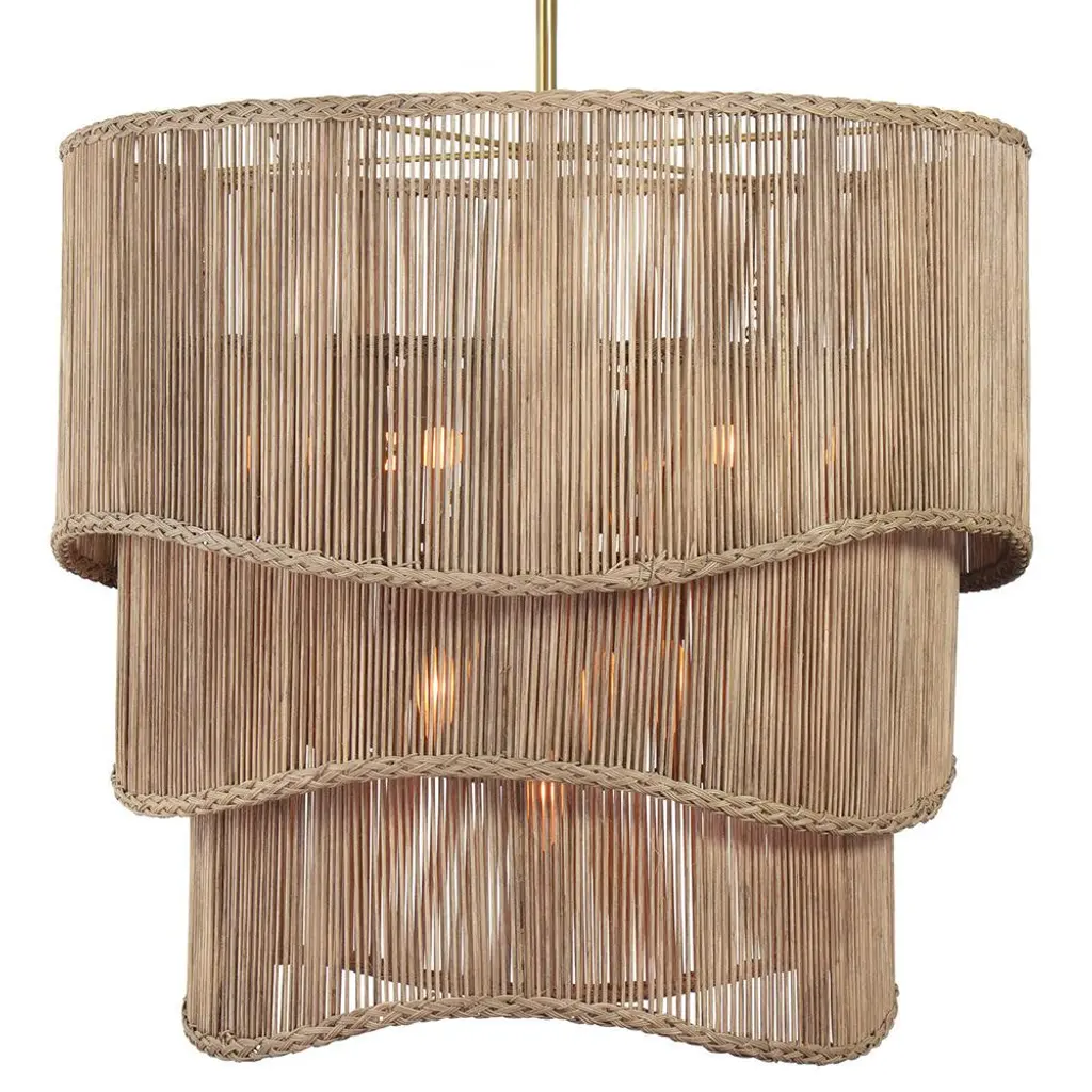 Nimes Coastal Beach Natural Woven Rattan Shaded Chandelier