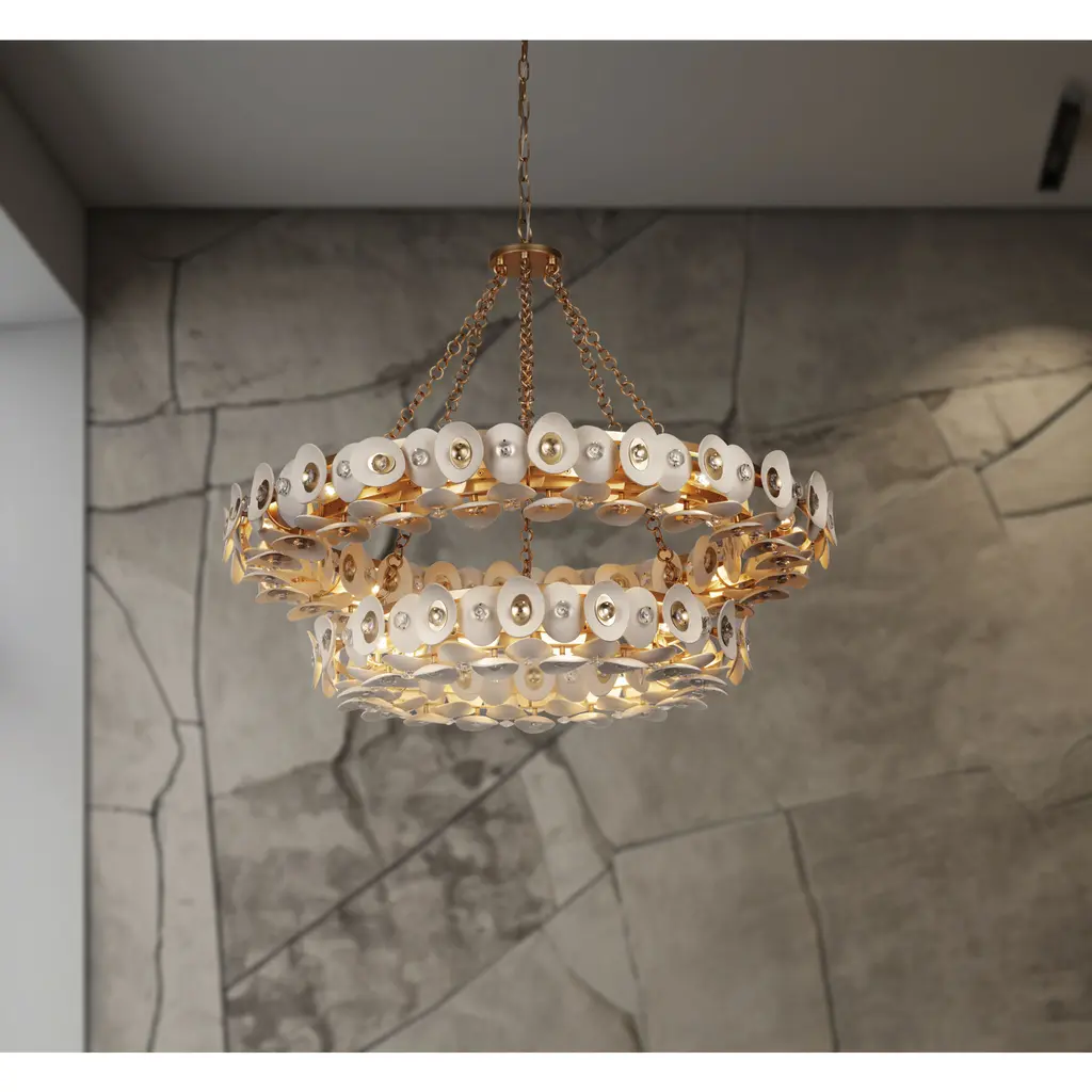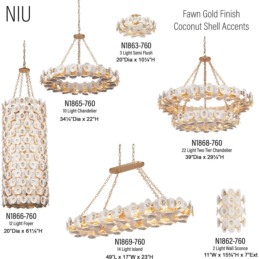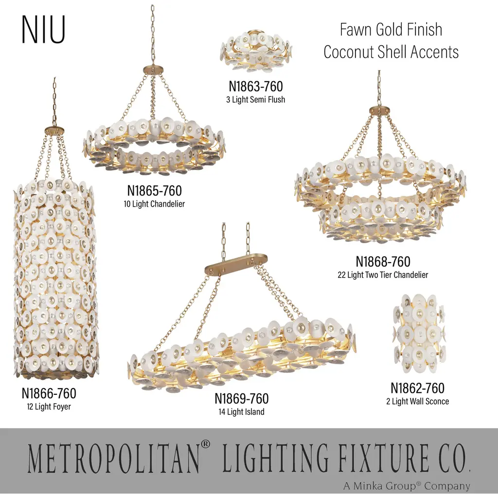 This 22 light Chandelier from the Niu collection by Metropolitan will enhance your home with a perfect mix of form and function. The features include a Coconut Shell Gold / Coconut Shell White finish applied by experts. This item qualifies for free shipping!