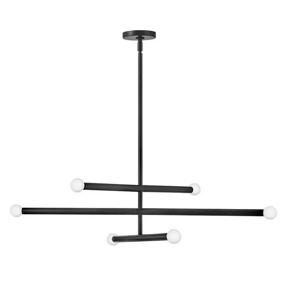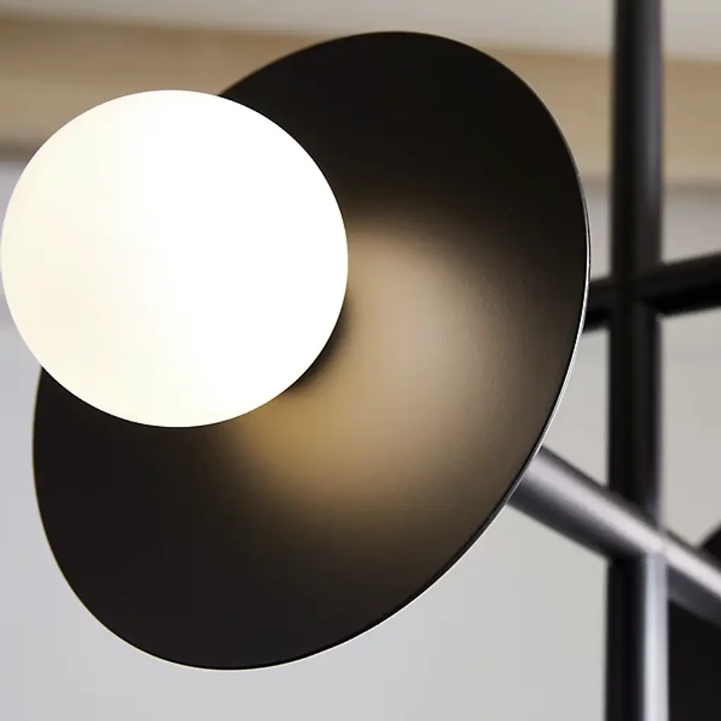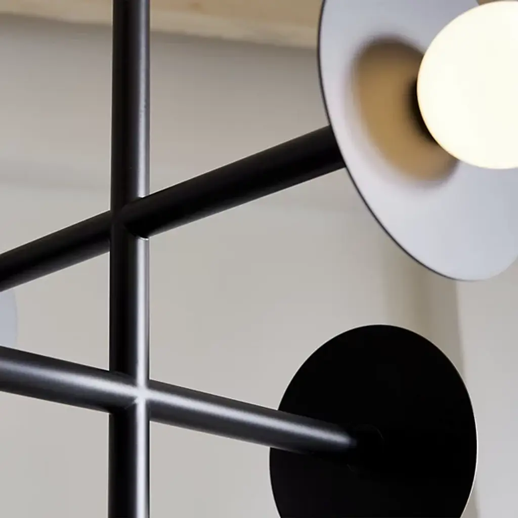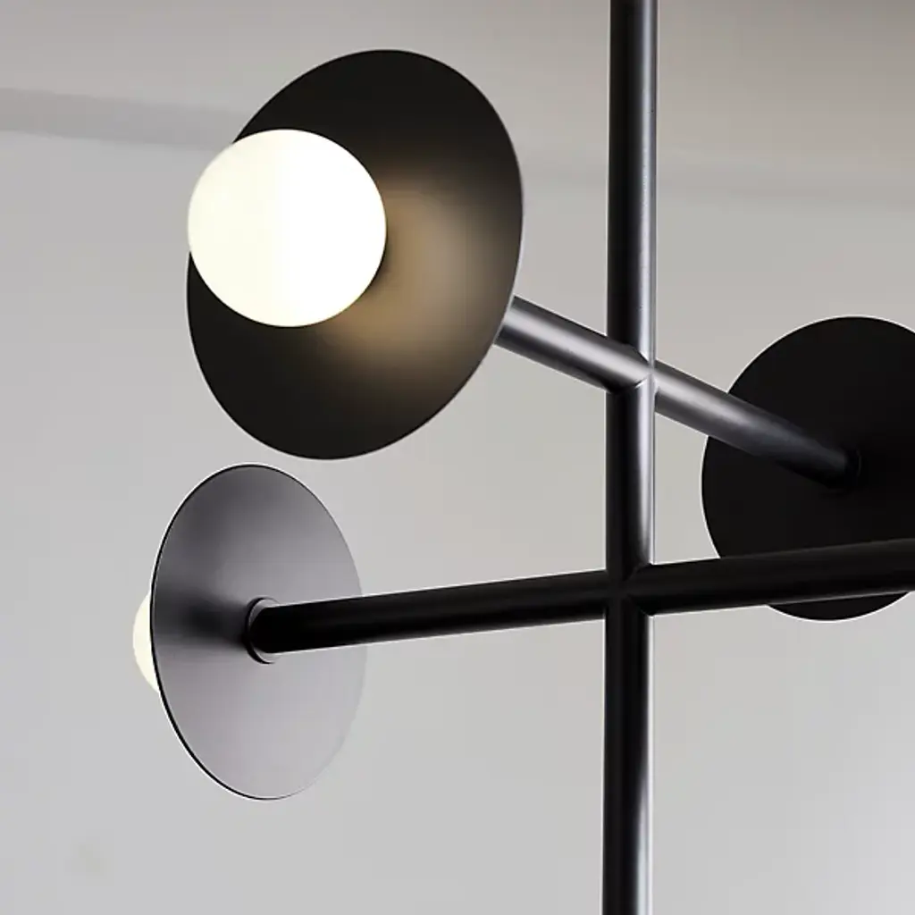 A sleek modern piece that adds style to the décor of your home, the Nodes 3 Tier Chandelier from Kelly by Kelly hangs from the ceiling with a simple round ceiling mount and a thin downrod. The cross-shaped body contains a set of arms that each end with a flat, circular backplate that shields a glass orb shade. A set of five bulbs in total spread a bright and full glow evenly throughout the surrounding space.