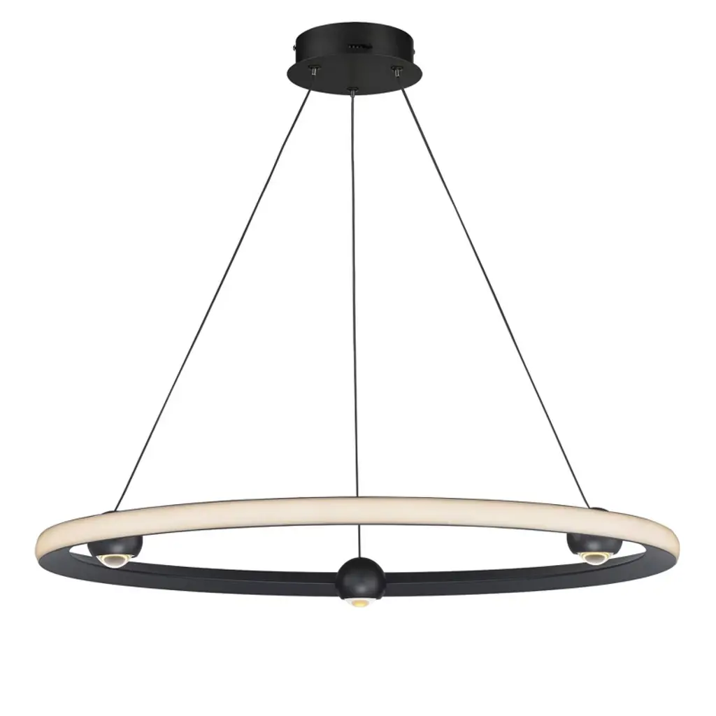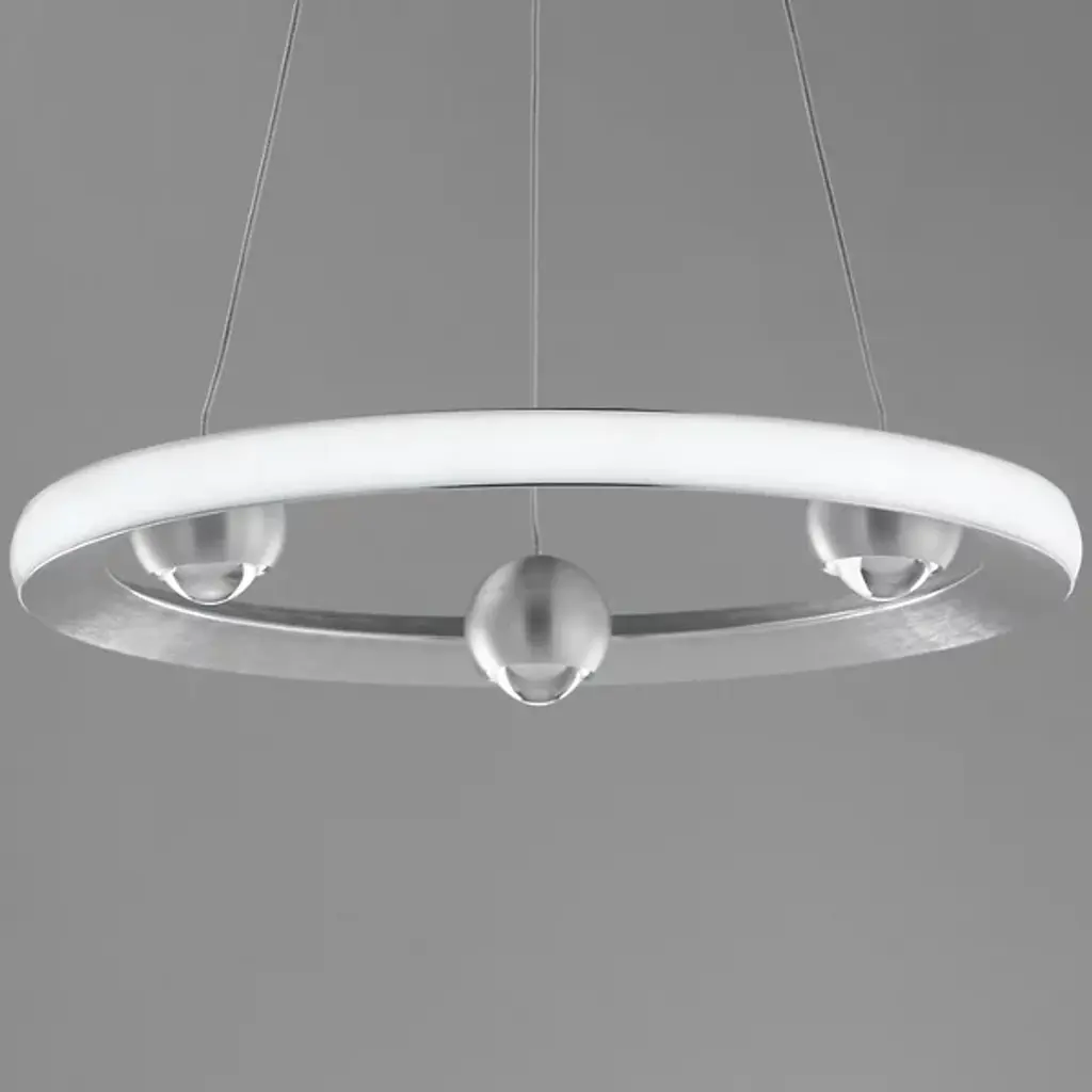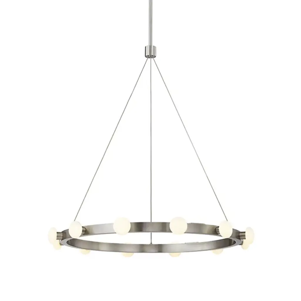 Introducing a new take on the now classically modern LED ring. The Nodes LED Chandelier from ET2 Lighting features large illuminated spheres acting as "nodes" to support the tapered aluminum channel while providing additional down light. Featuring a CCT selectable switch, the collection conveniently allows end users to select from warmer white light to energizing bright white lighting in 5 color temperature options. The convenient functionality is matched with its performance, meeting California's JA8 Title 24 requirements. Rated to deliver higher lumens per watt and power sources that support range voltage input and 3-in-one dimming, this product is designed to meet the requirements of both home and commercial projects.
