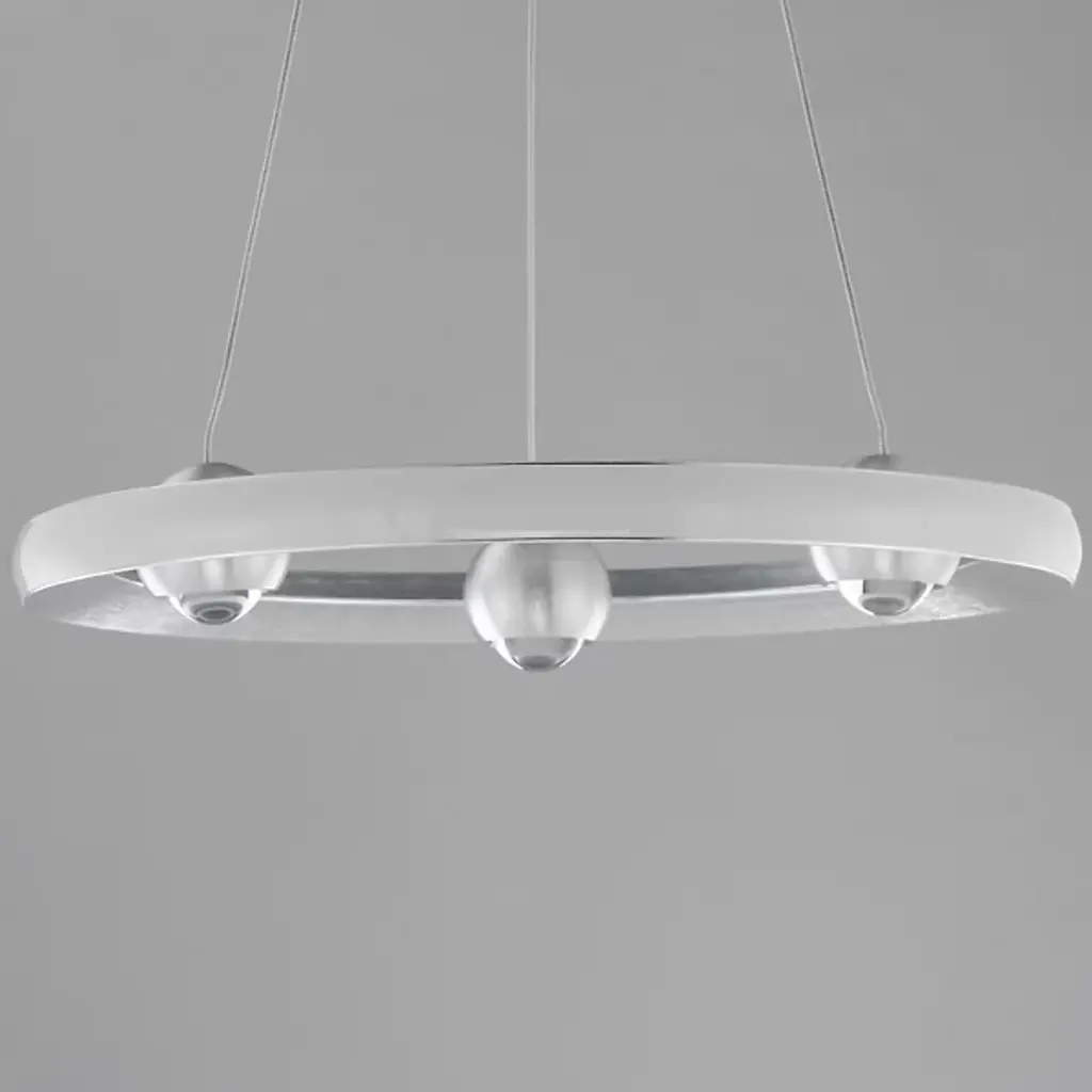 Introducing a new take on the now classically modern LED ring. The Nodes LED Chandelier from ET2 Lighting features large illuminated spheres acting as "nodes" to support the tapered aluminum channel while providing additional down light. Featuring a CCT selectable switch, the collection conveniently allows end users to select from warmer white light to energizing bright white lighting in 5 color temperature options. The convenient functionality is matched with its performance, meeting California's JA8 Title 24 requirements. Rated to deliver higher lumens per watt and power sources that support range voltage input and 3-in-one dimming, this product is designed to meet the requirements of both home and commercial projects.