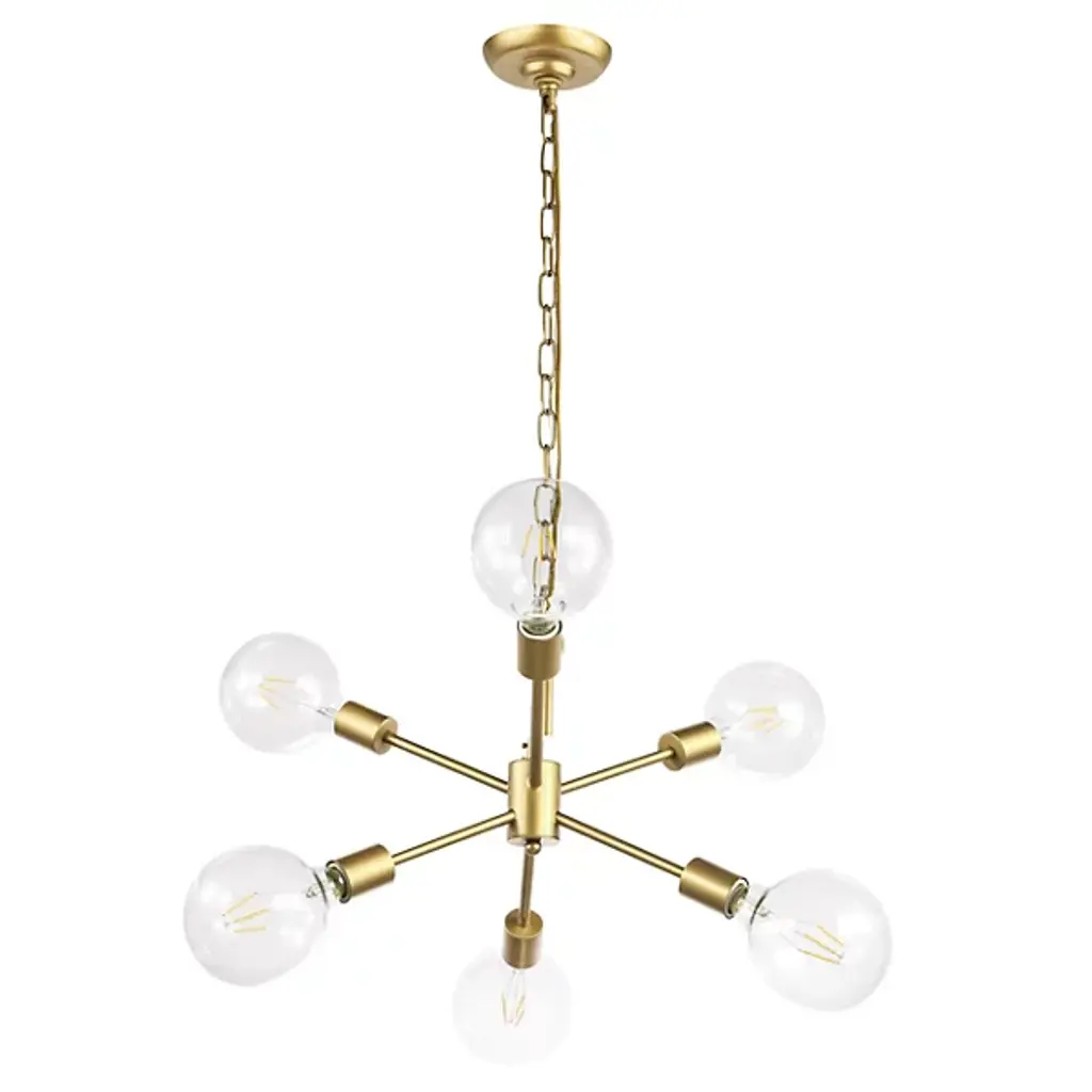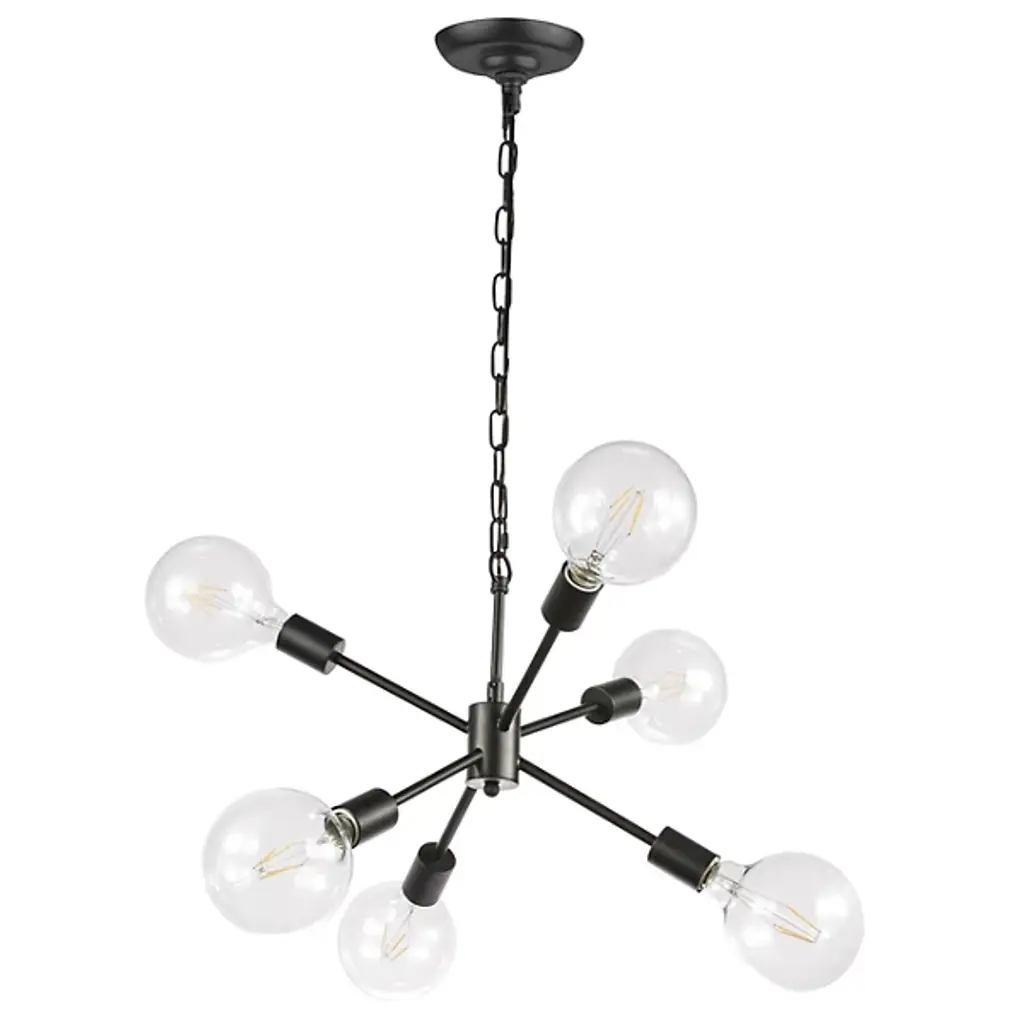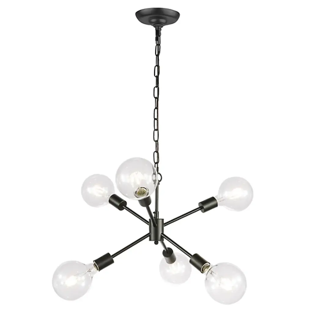 The Nolan Chandelier from Elegant Lighting is a celestial burst of illumination. Six arms radiate from a central nexus, each terminating in an exposed bulb that seems to drift. The fixture's adjustable chain allows it to adapt to various ceiling heights, ensuring its stellar display is always perfectly positioned. In dining rooms, foyers, or open living spaces, this chandelier becomes the gravitational center around which all other design elements orbit, its industrial-chic aesthetic a bold statement of modern sophistication.