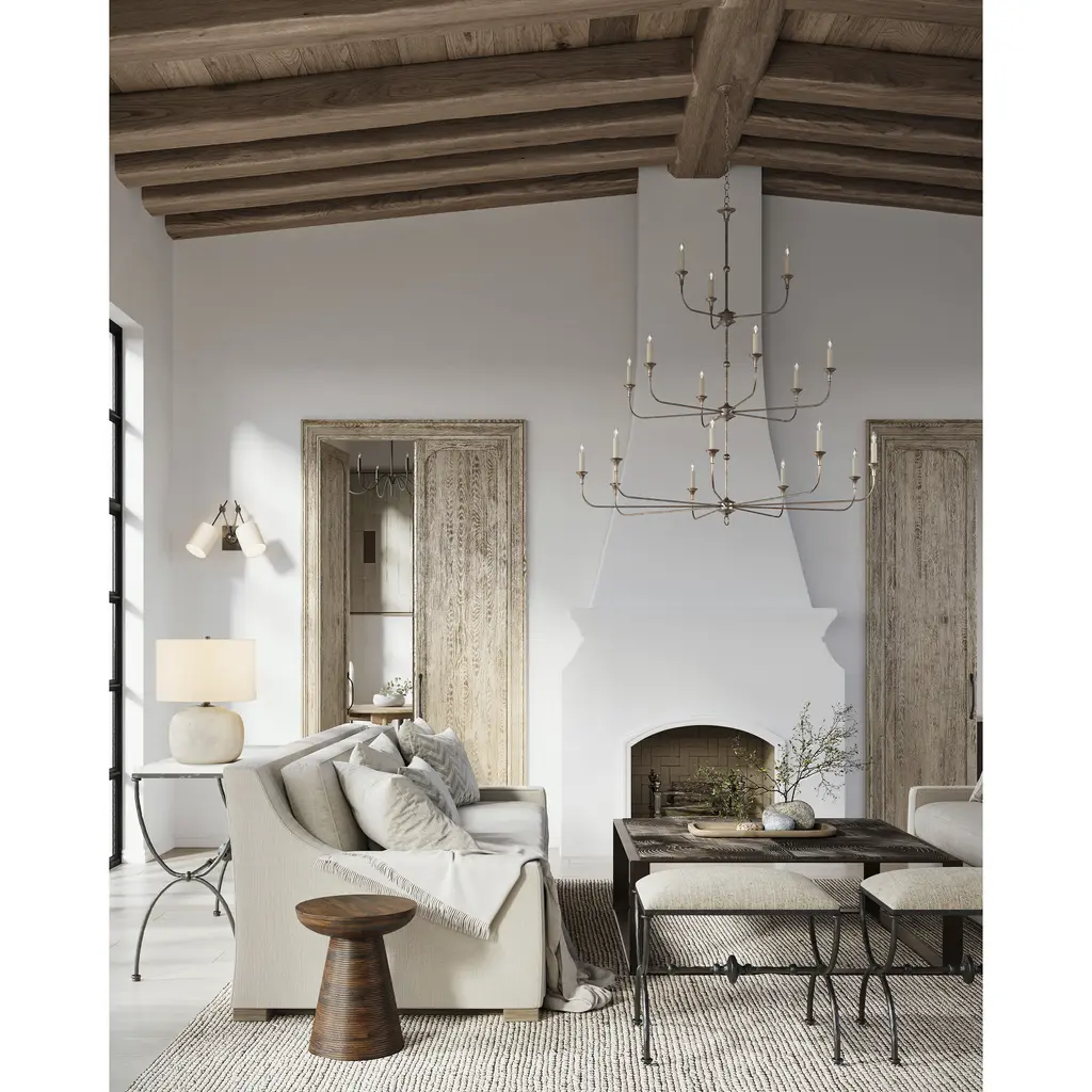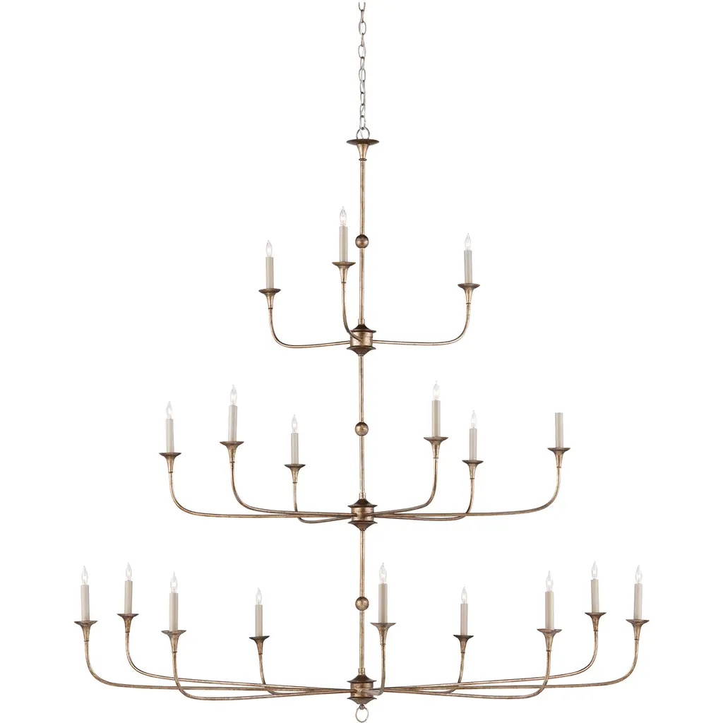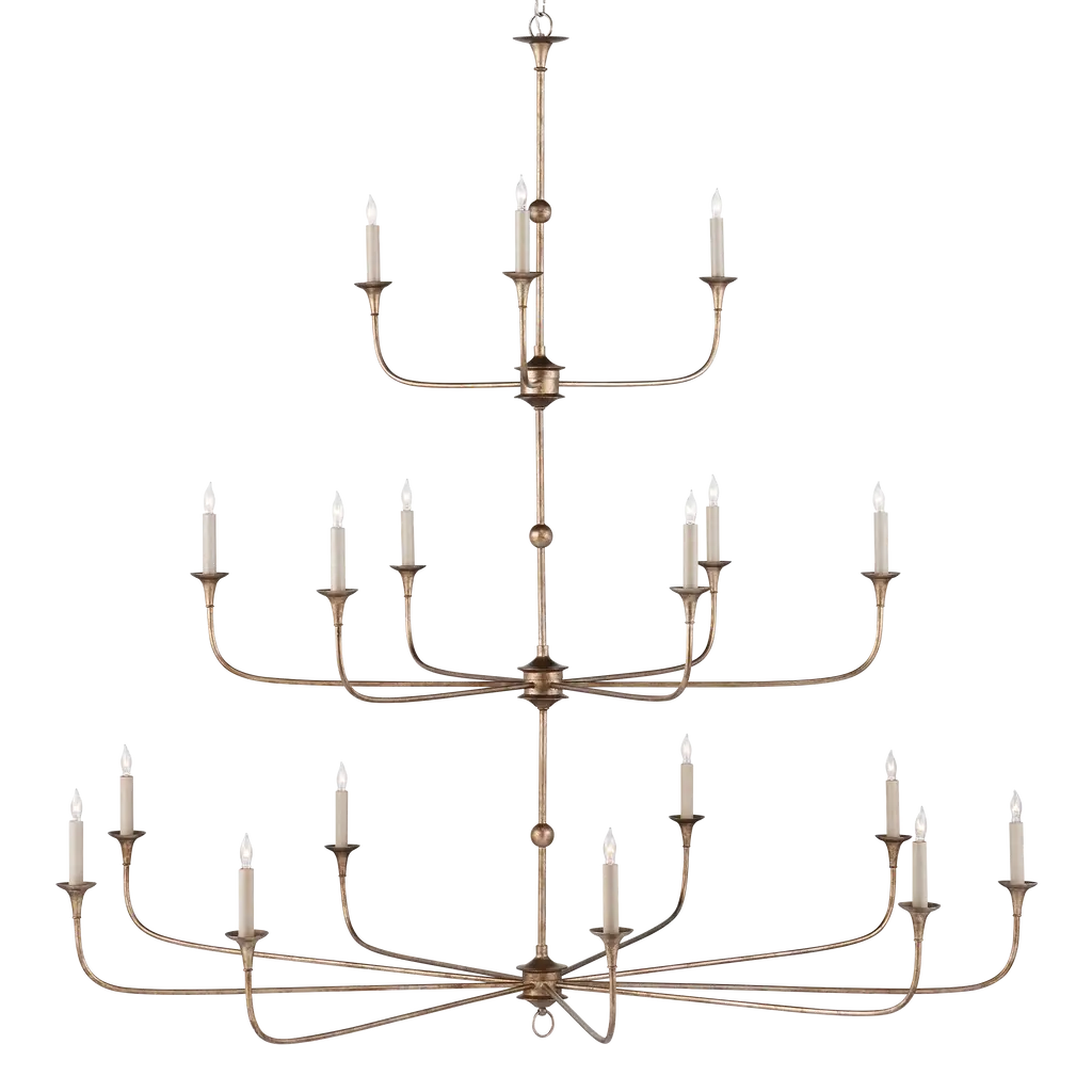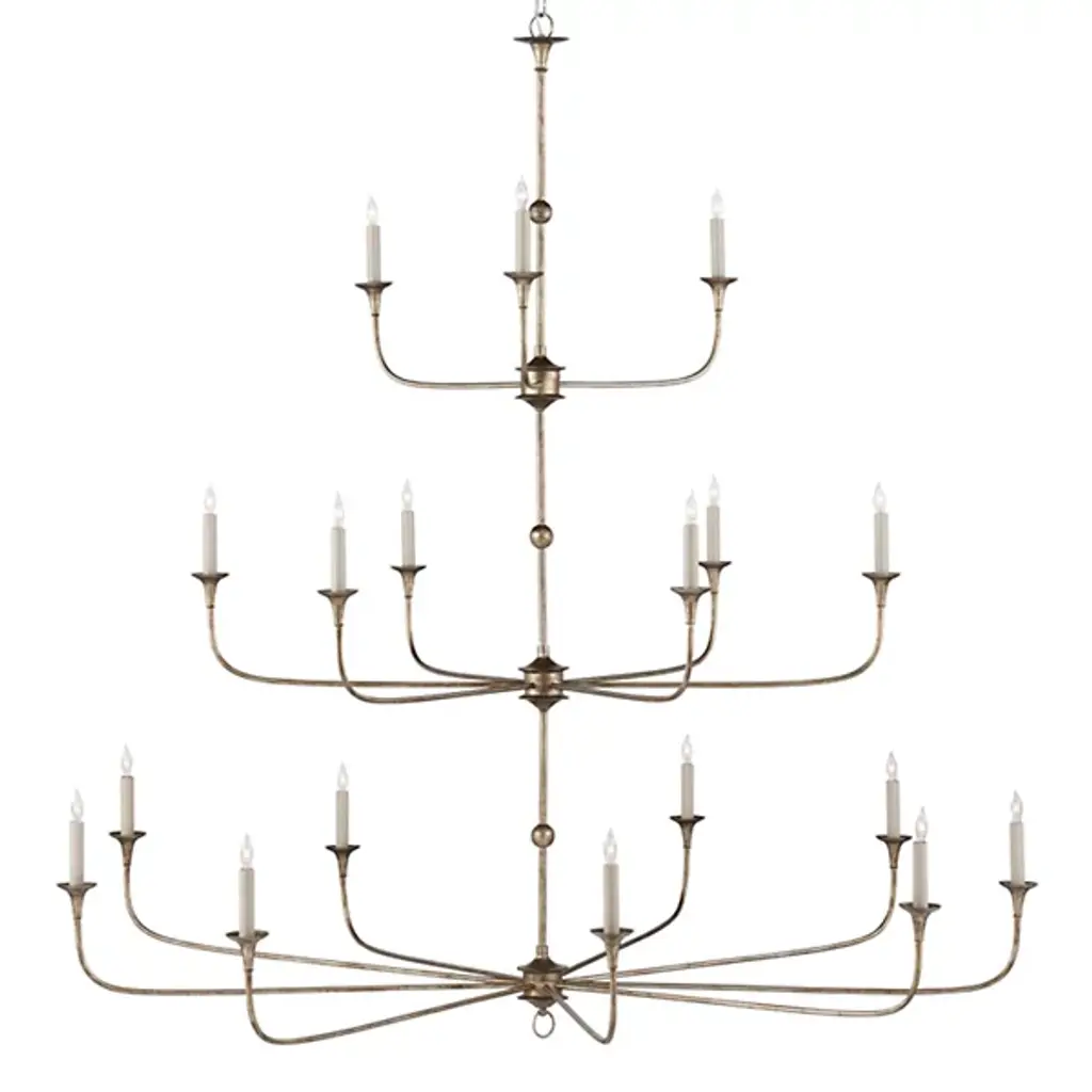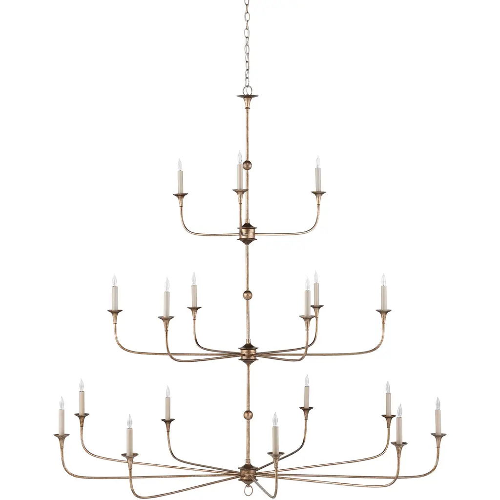 Design notes on the Nottaway Grande Bronze Chandelier include long arms that stretch gracefully from small cogs and a ring that ornaments its bottom-most point. The profile of the fixture has a lovely fluidity to it, and the Pyrite bronze finish adds textural interest to the bronze chandelier. This statuesque chandelier is decidedly in the traditional design category, , but its airiness allows it to function in a range of large rooms. Adjustable from 70" to 138" with use of included chain/rod kit/cable. If your space calls for a longer drop, additional chain/rods/cable is available for purchase.