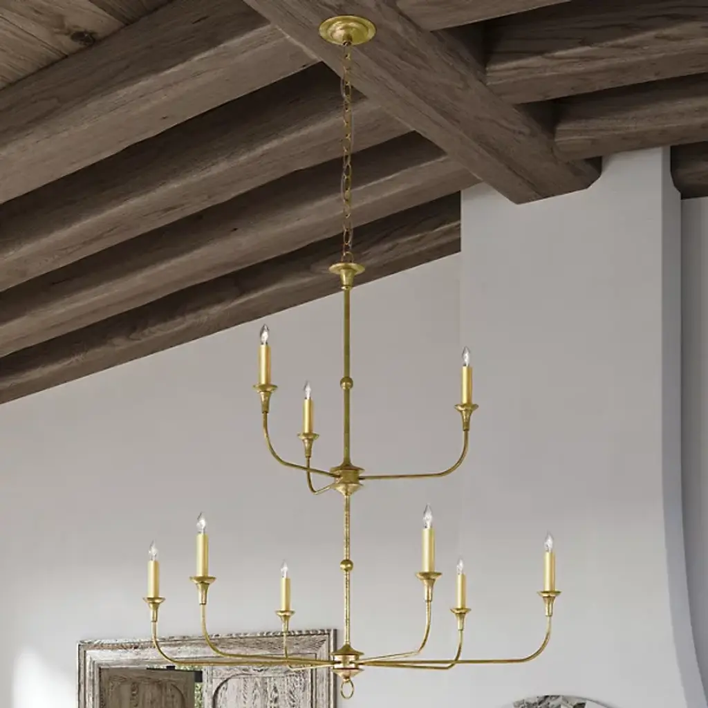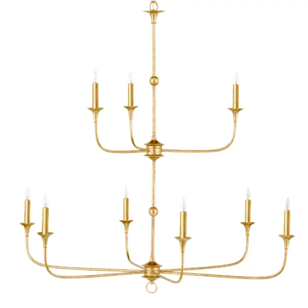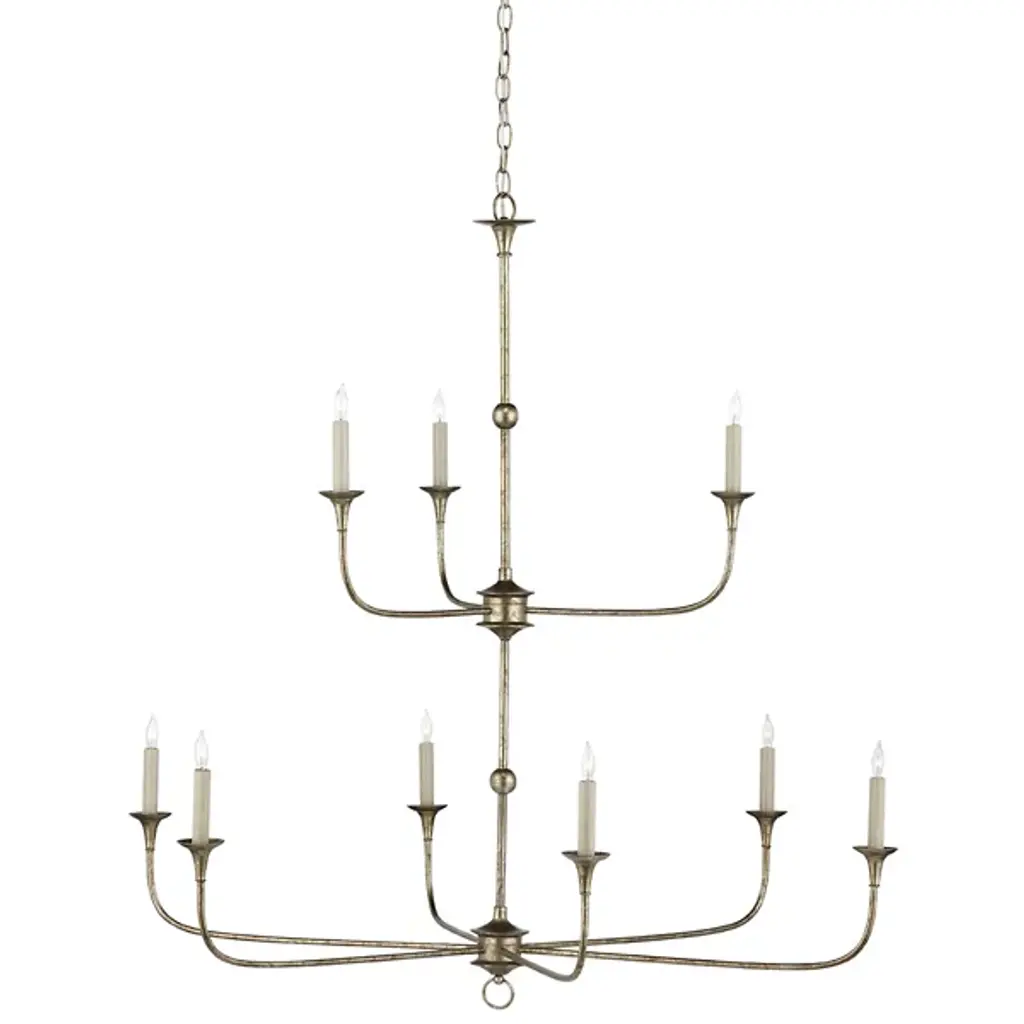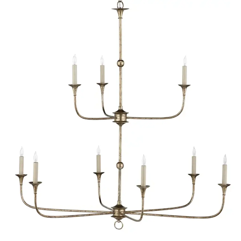 The Nottaway 2-Tier Chandelier from Currey & Company is a stunning light fixture combining timeless elegance and transitional design. This refined chandelier emanates a captivating candlelight-style glow, enveloping your space in a warm and inviting atmosphere. Your chandelier’s artistry is beautifully expressed through the graceful, upward curve of the framework. Crafted with precision from durable wrought iron, Nottaway exudes style and promises longevity, making it a lasting addition to your décor.