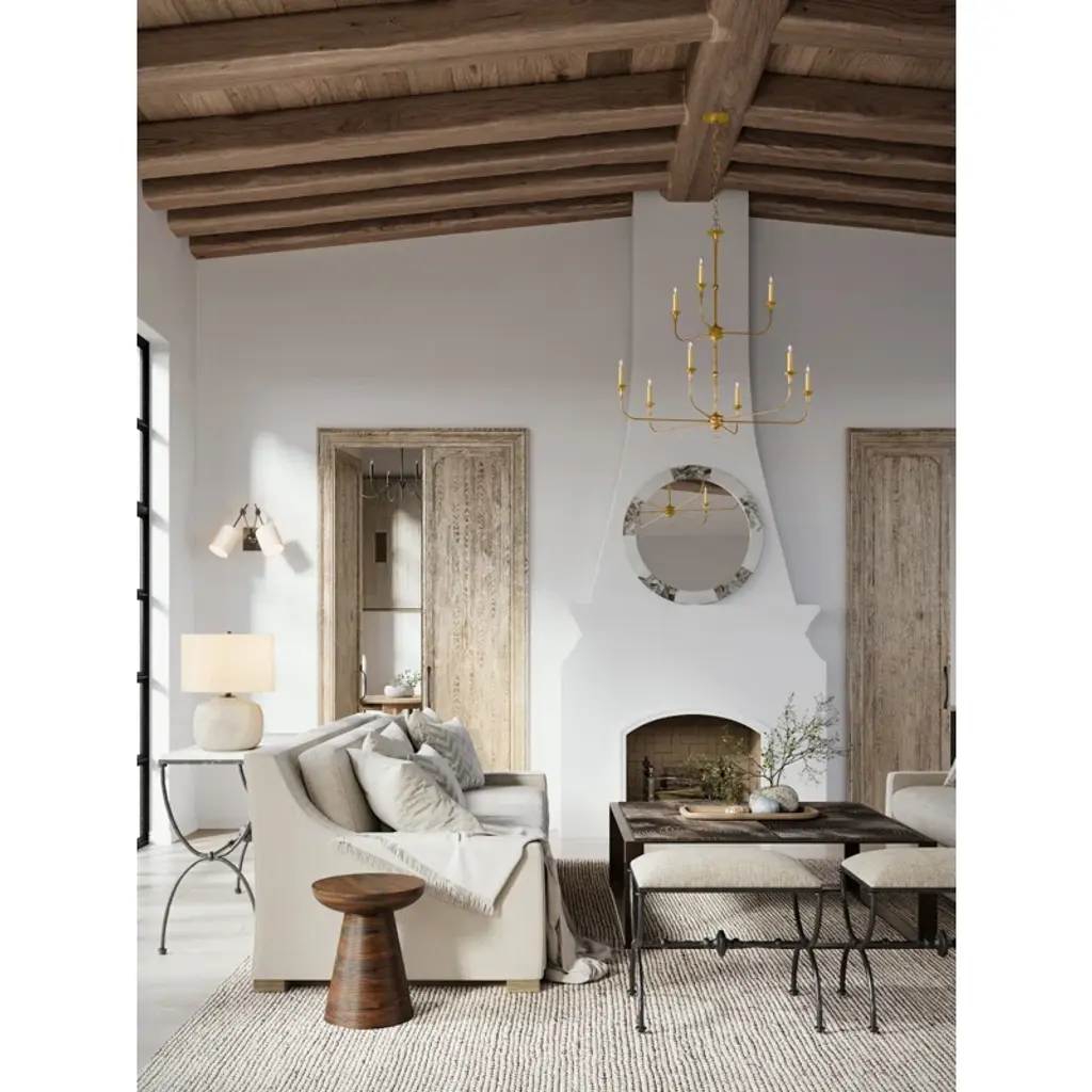 Design notes on the Nottaway Bronze Large Chandelier include long arms that stretch gracefully from a small cog and a ring that ornaments its bottom-most point. The profile of the fixture has a lovely fluidity to it, and the Pyrite bronze finish adds textural interest to the bronze chandelier. We offer the Nottaway in a several sizes and finishes.