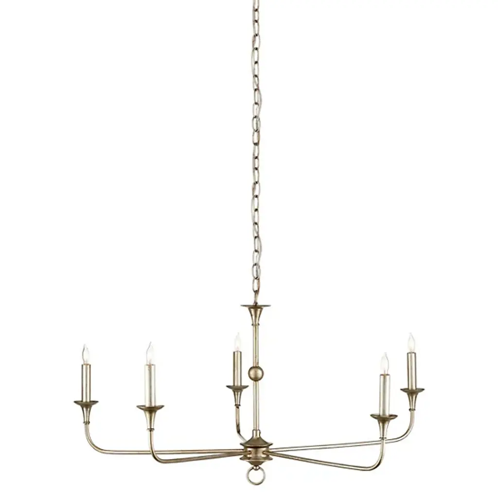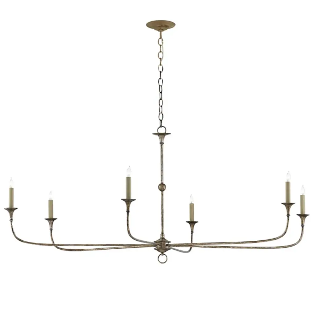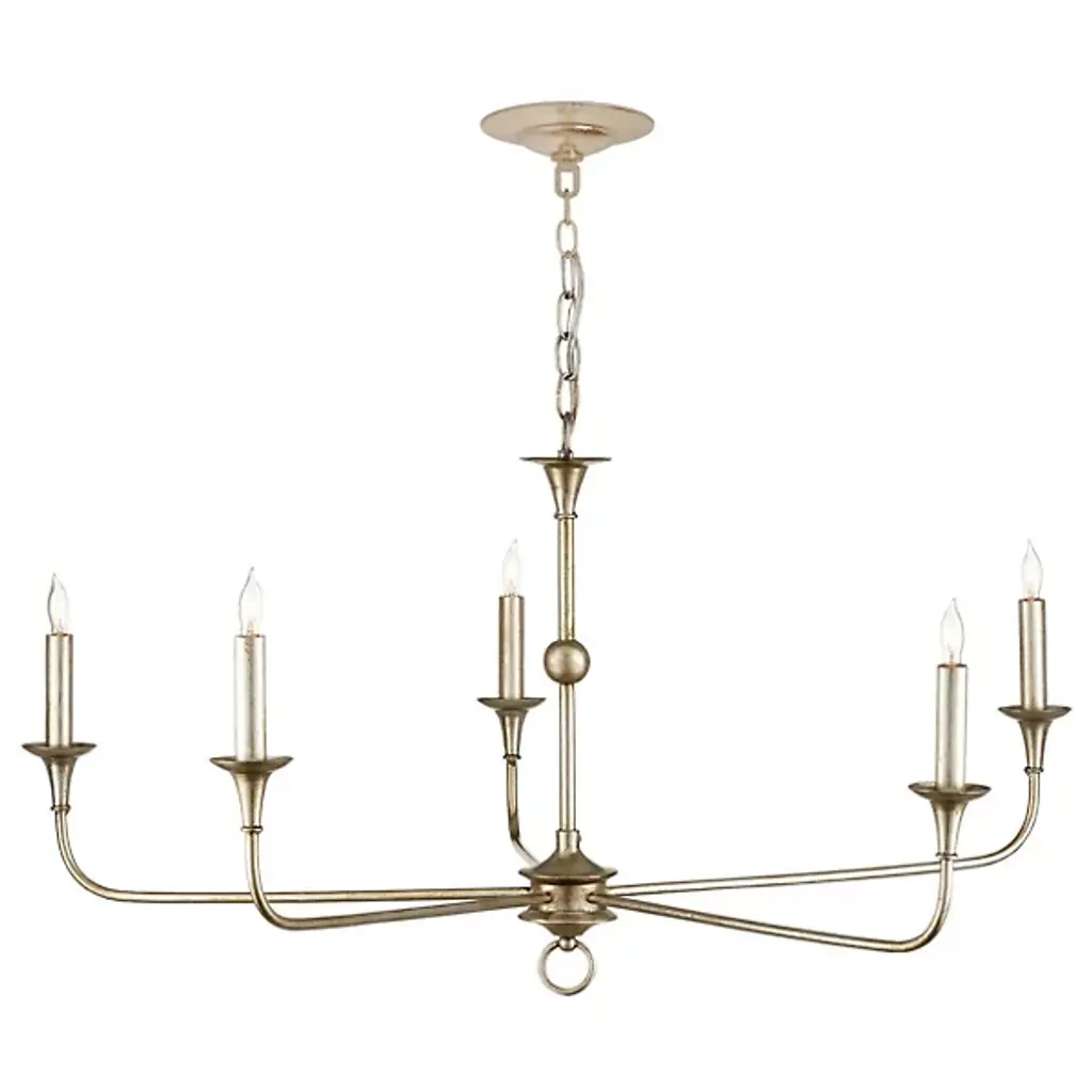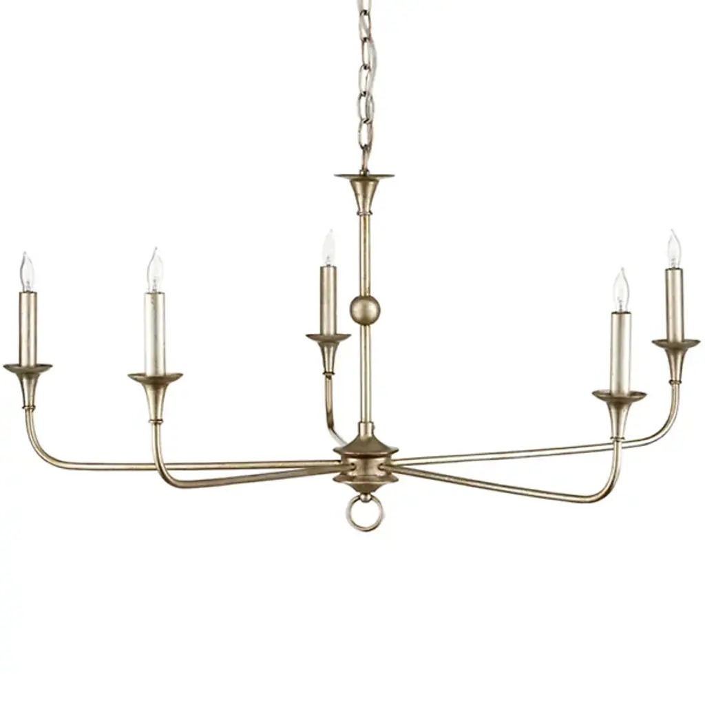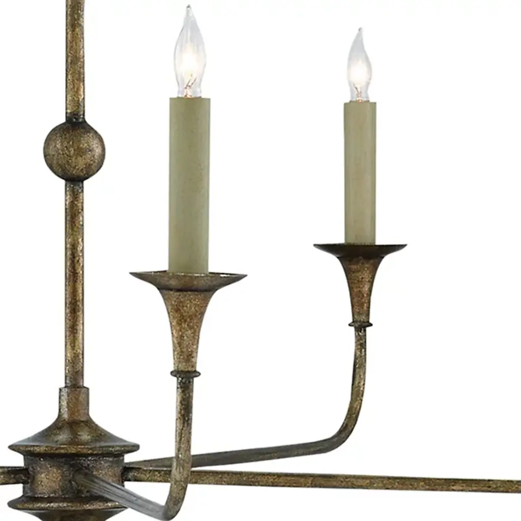 The Currey & Company Nottaway Chandelier blends the ideas of traditional with minimalism. Gently curved rods extend from the center, ending on exposed bulbs that reference candlelight. The multi tonal finish and subtle adornments elevate the piece, making this fixture appropriate for a wide range of interior settings.