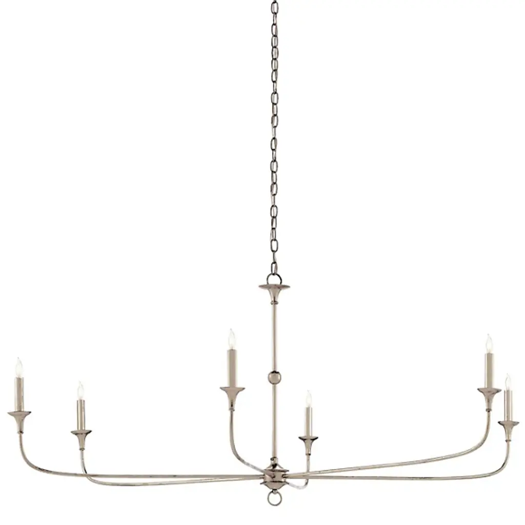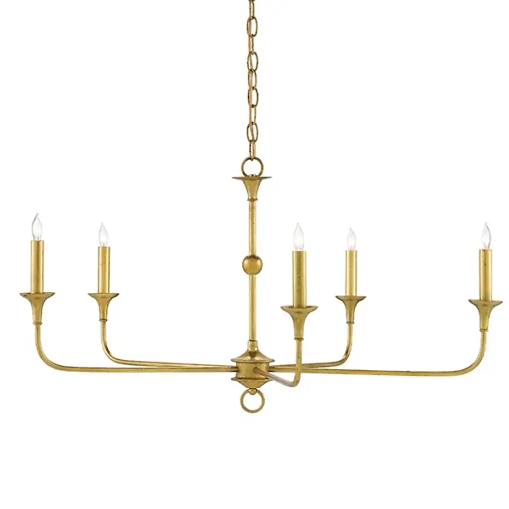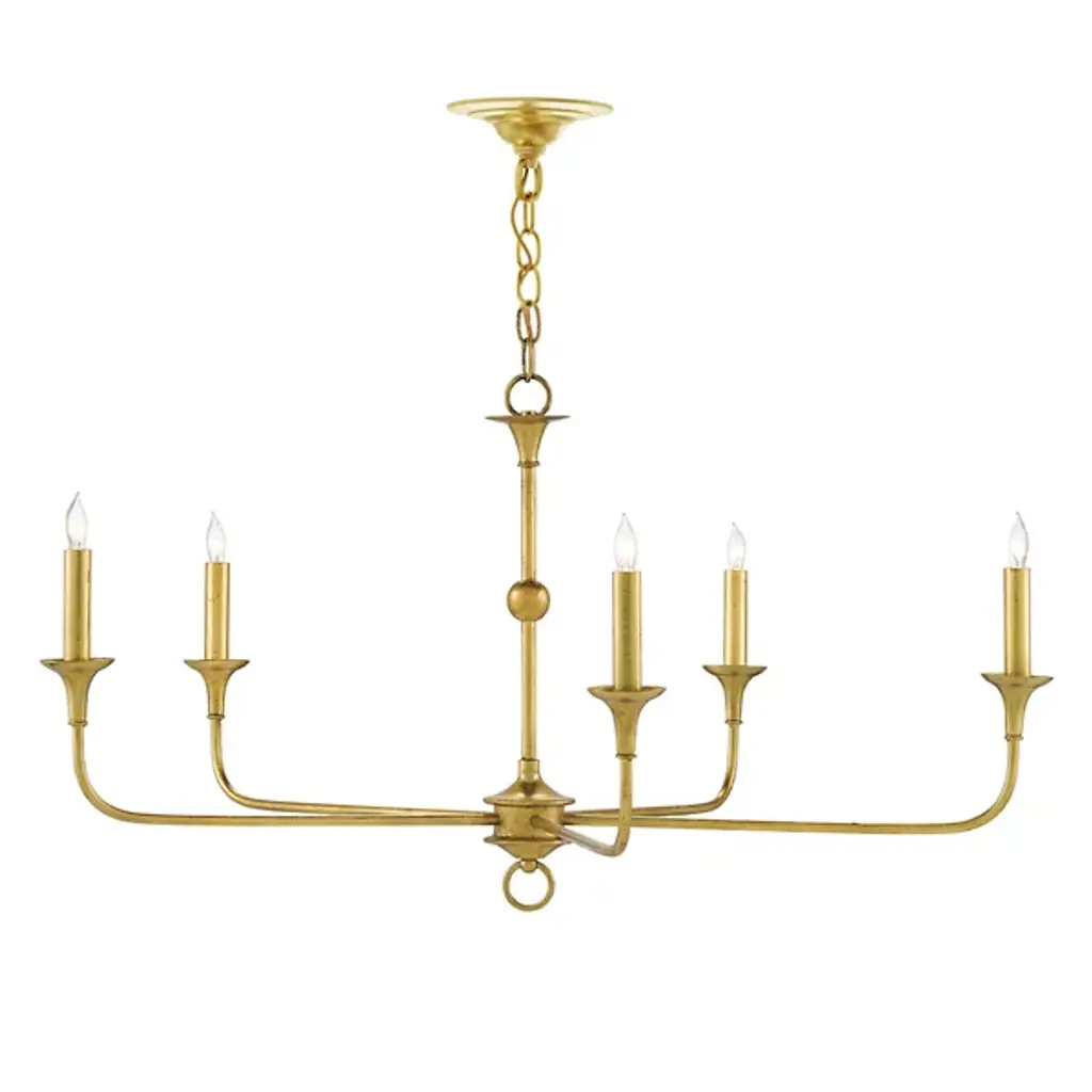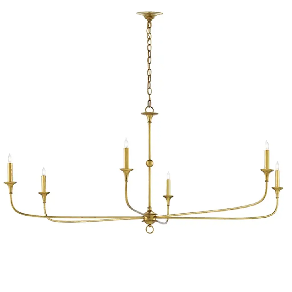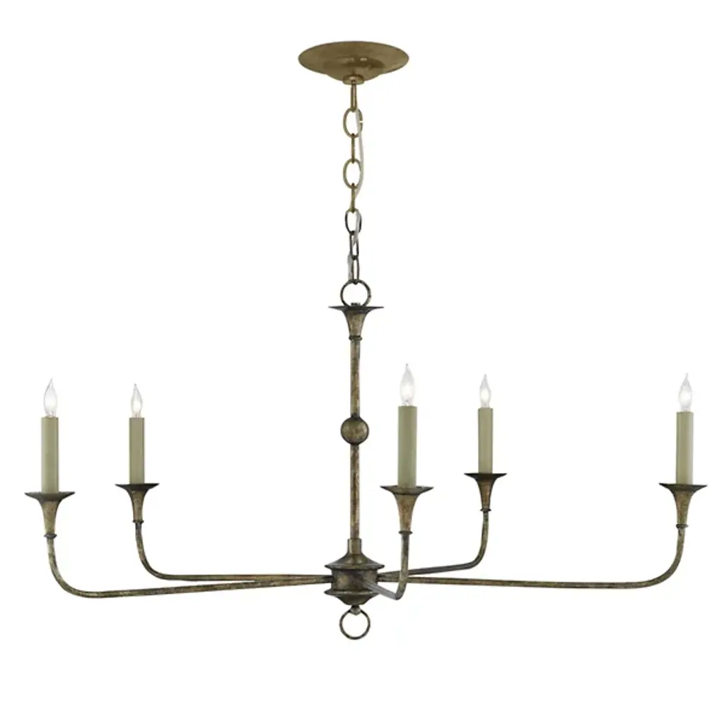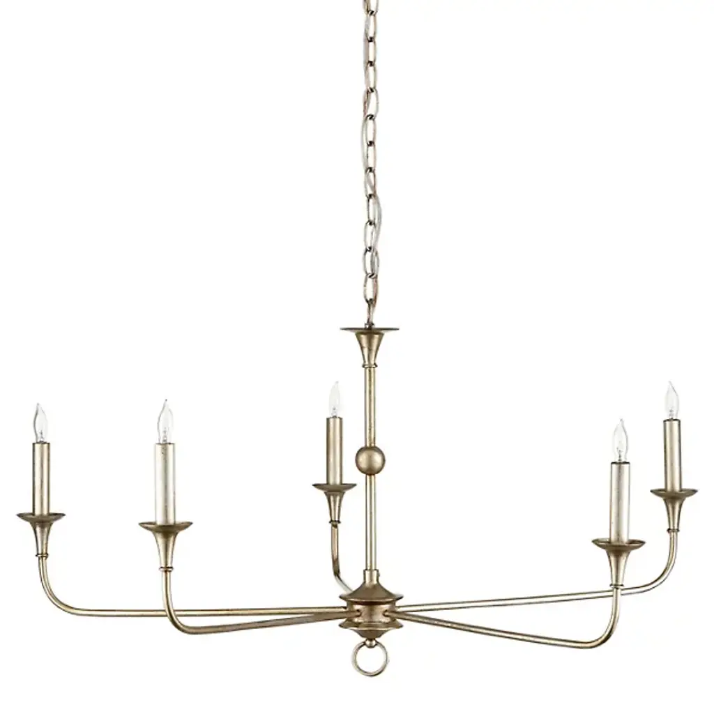 The Currey & Company Nottaway Chandelier blends the ideas of traditional with minimalism. Gently curved rods extend from the center, ending on exposed bulbs that reference candlelight. The multi tonal finish and subtle adornments elevate the piece, making this fixture appropriate for a wide range of interior settings.