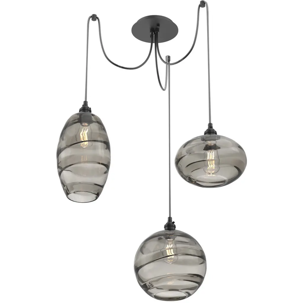 Nova Round Multi-Port-3PC-Incandescent-Metallic Beige Silver-Blown Glass - Smoke-Silver Cloth Braided Cord-E26