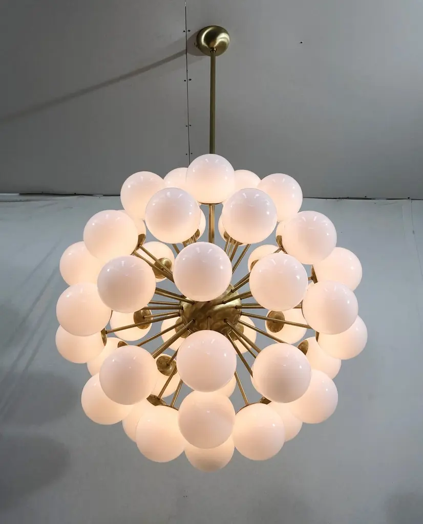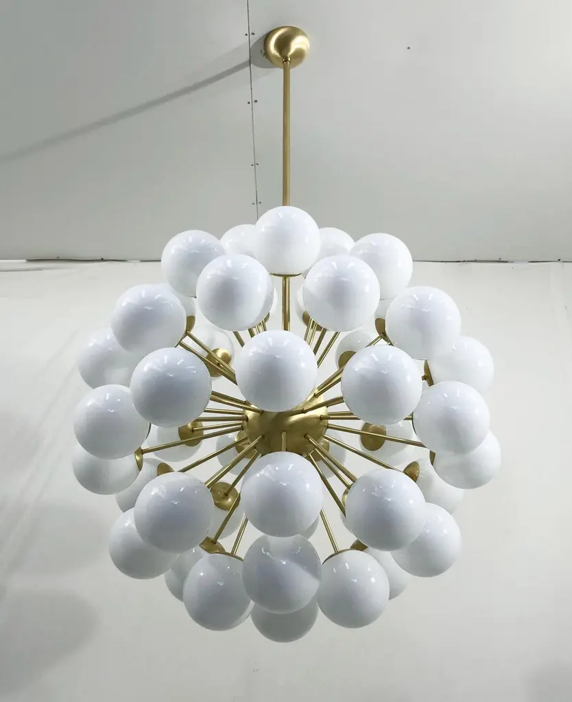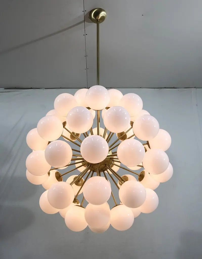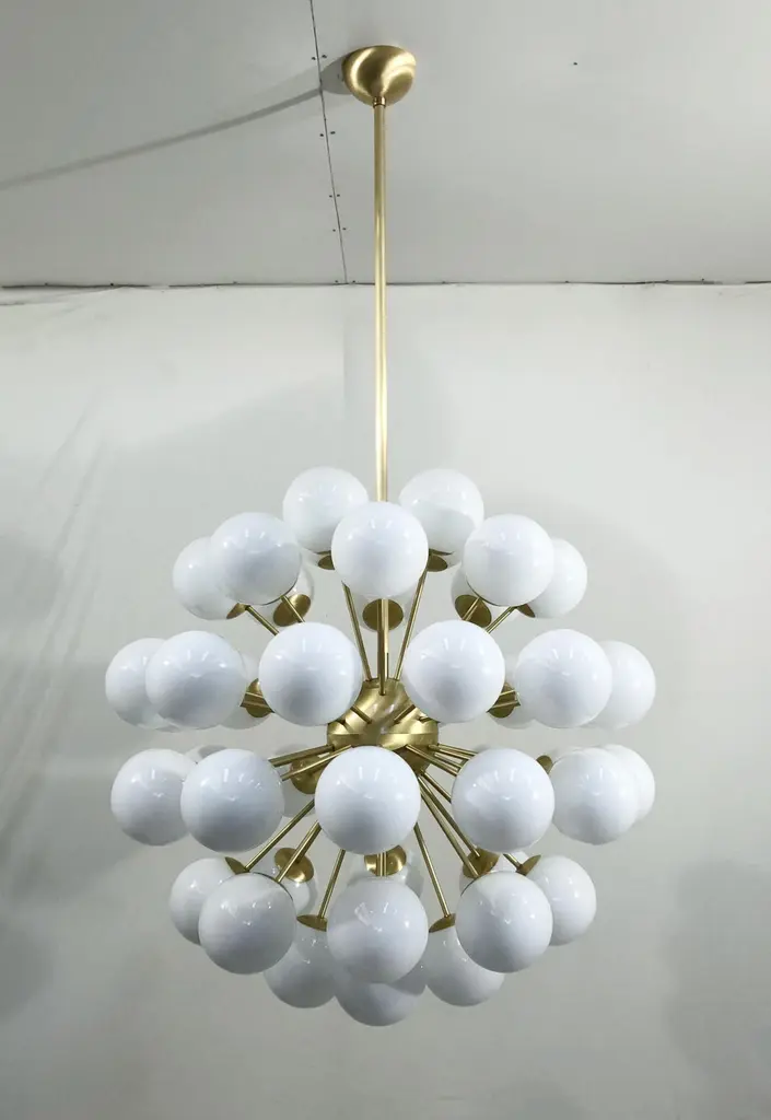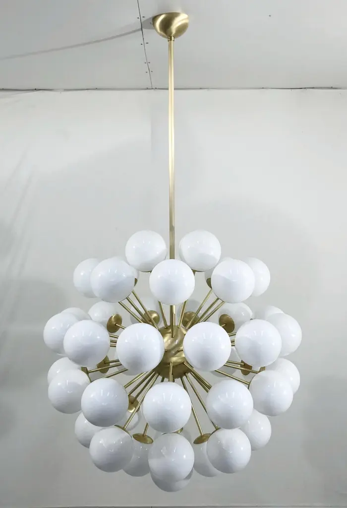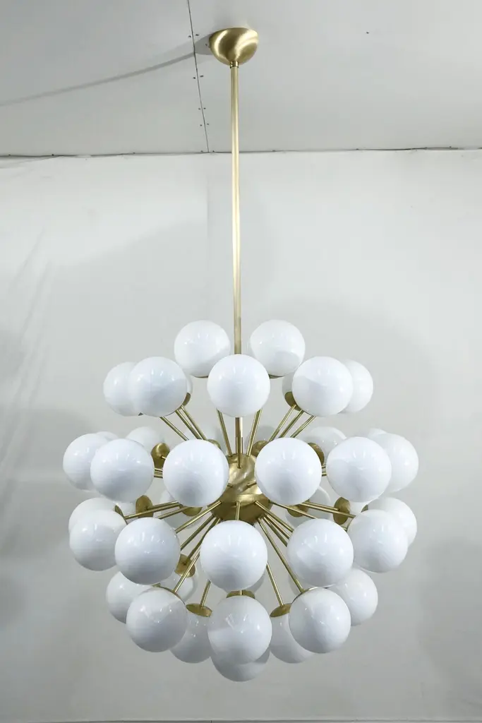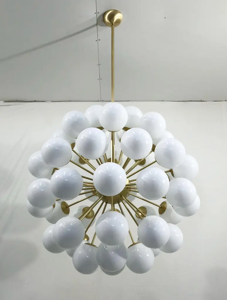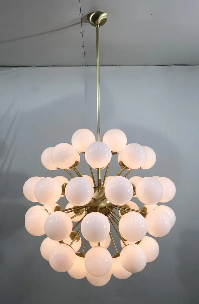 Italian sputnik chandelier with 48 Murano glass globes mounted on brass frame / Designed by Fabio Bergomi for Fabio Ltd / Made in Italy48 lights / E12 or E14 type / max 40W eachMeasures: diameter 38 inches / height 38 inches plus rod and canopyOrder only / this item ships from ItalyOrder Reference # FABIOLTD NOVA 48