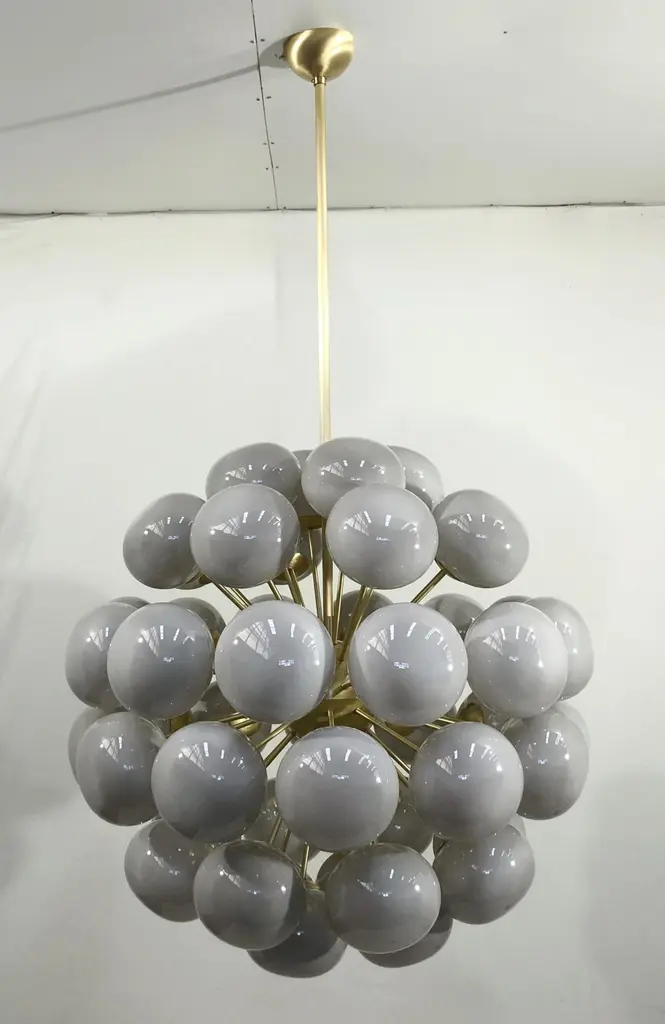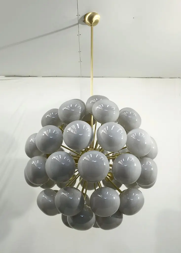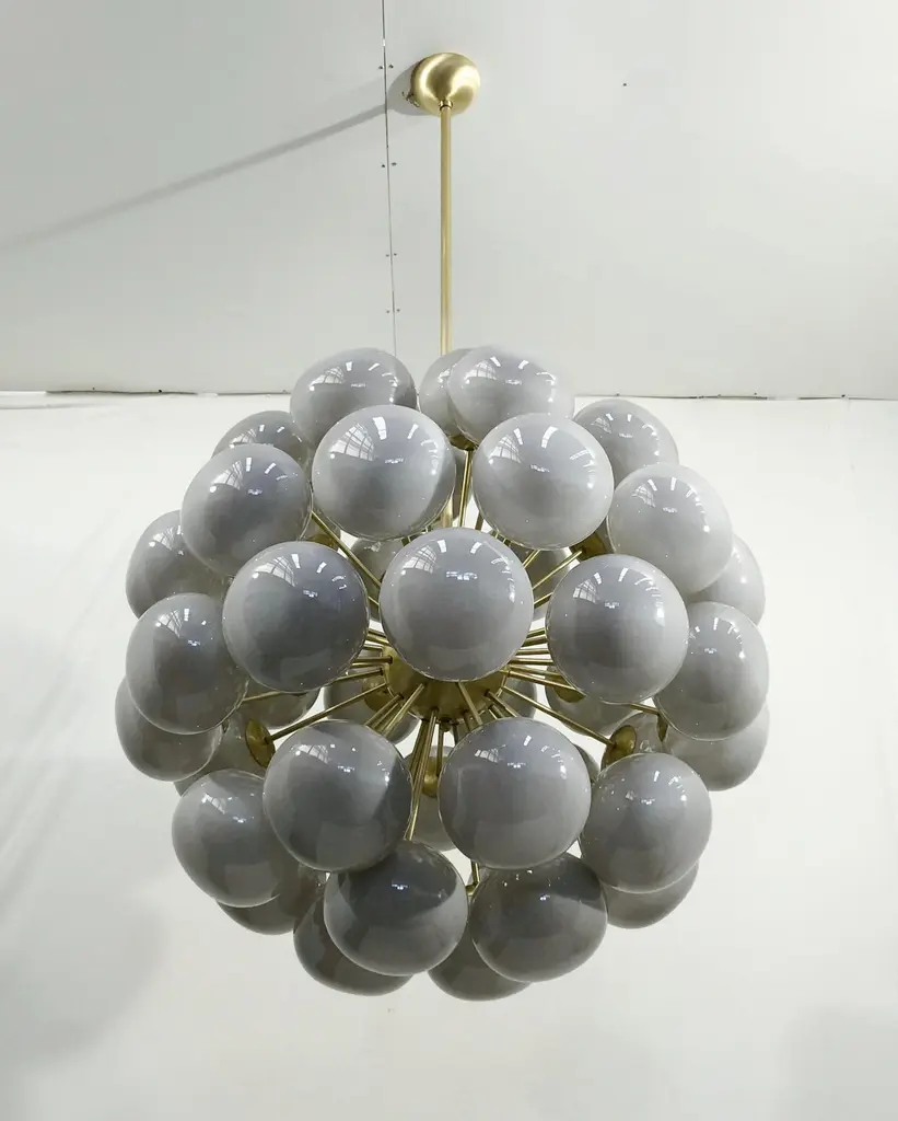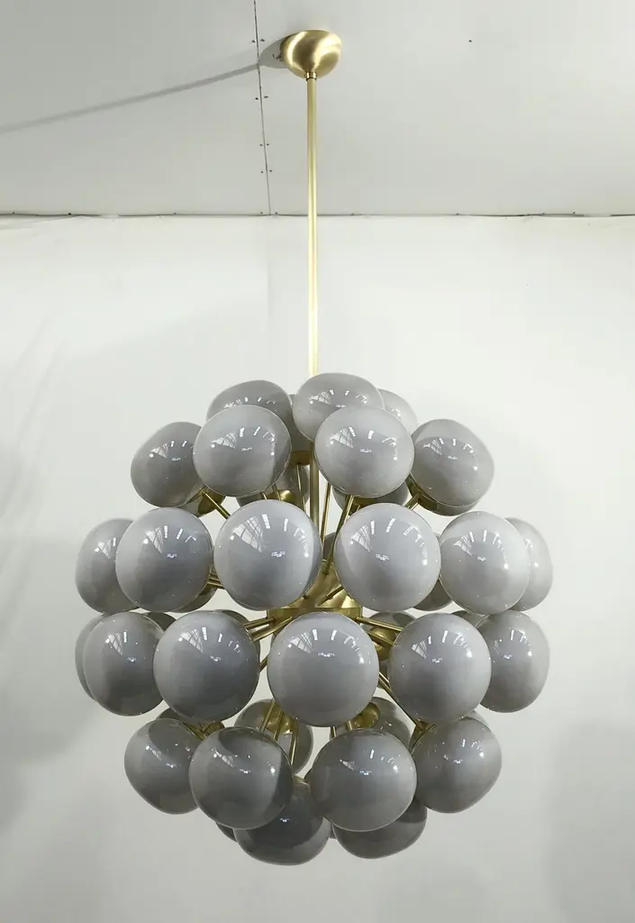 Italian sputnik chandelier with 48 gray Murano pebble glass shades mounted on brass frame / Designed by Fabio Bergomi for Fabio Ltd / Made in Italy48 lights / E12 or E14 type / max 40W eachMeasures: diameter 38 inches / height 38 inches plus rod and canopyOrder only / this item ships from ItalyOrder Reference # Fabio Ltd Nova 48 Pebble