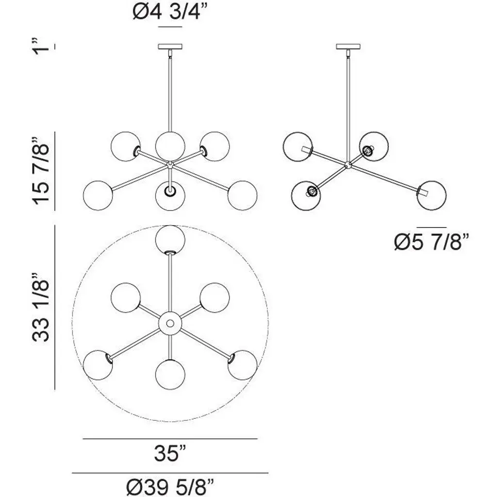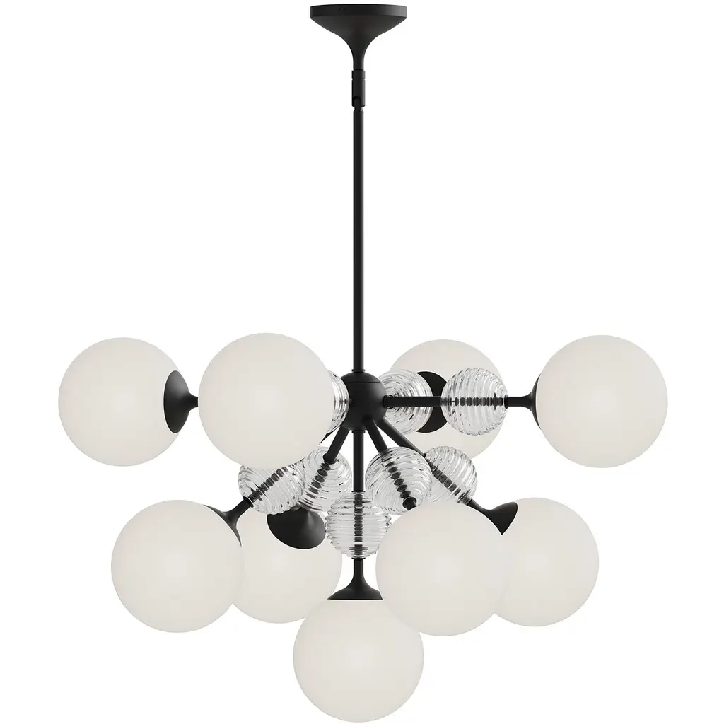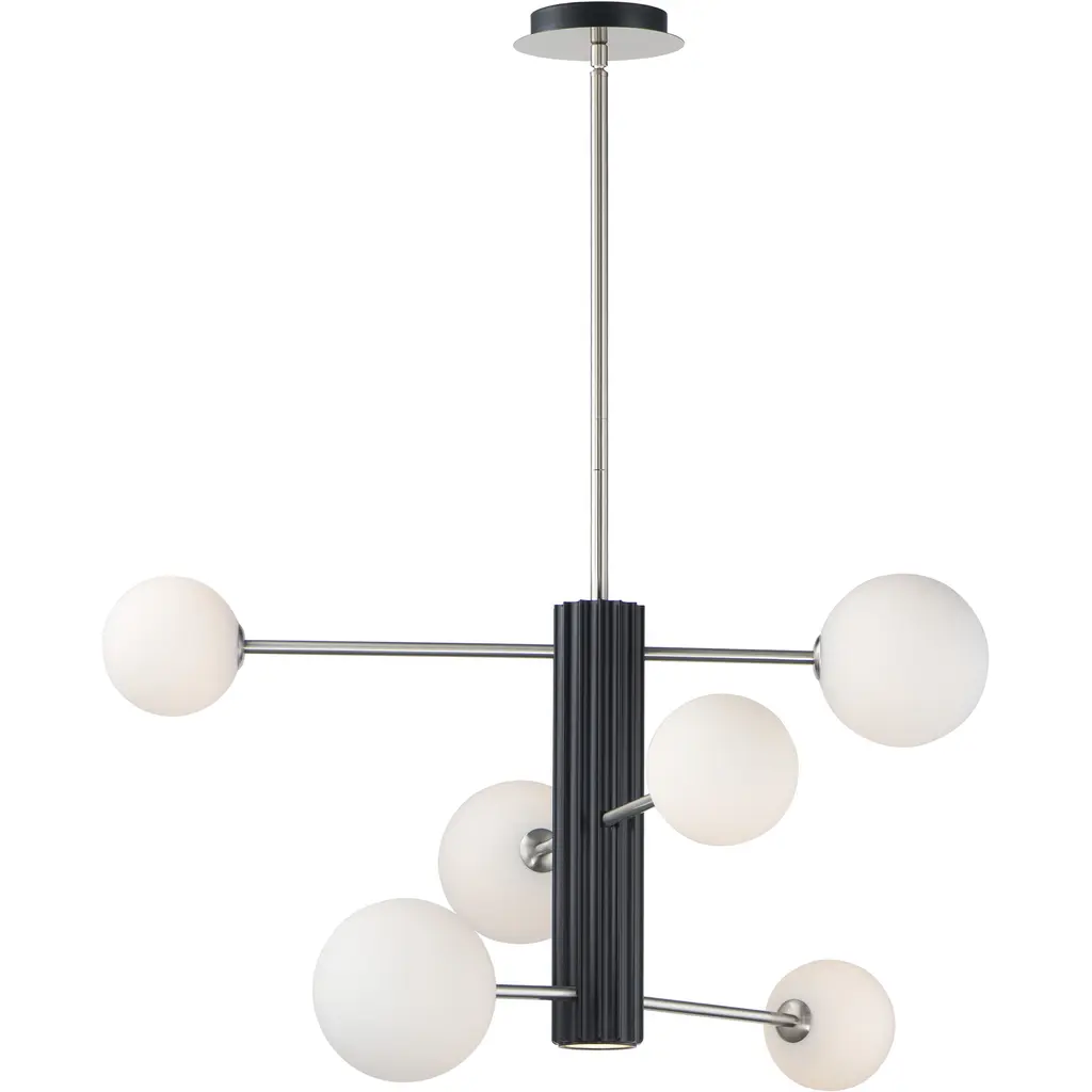 Novo 6 Light 33.13 Inch Black Chandelier Ceiling Light In Black And Opal Glass