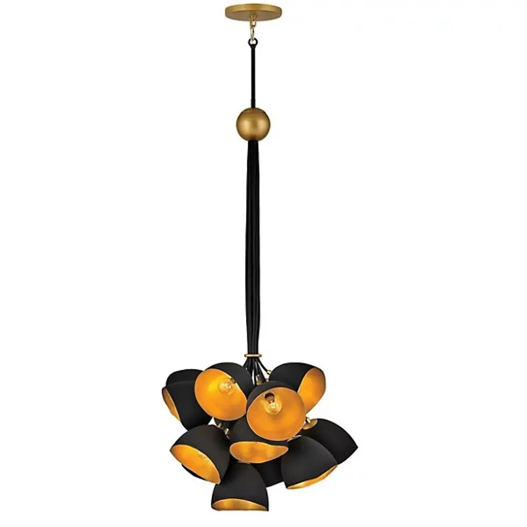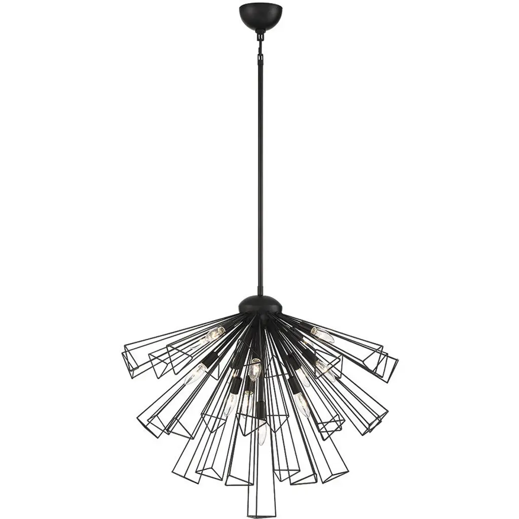 The Nula Chandelier from Hinkley is an innovative piece that is sure to dazzle your hip guests. The chandelier features 15 light fixtures, suspended in a radiant array that projects a wide span of brilliance into the environment below. Each of the fixtures is individually held by a single down rod, which can be adjusted for a custom hang from the canopy.