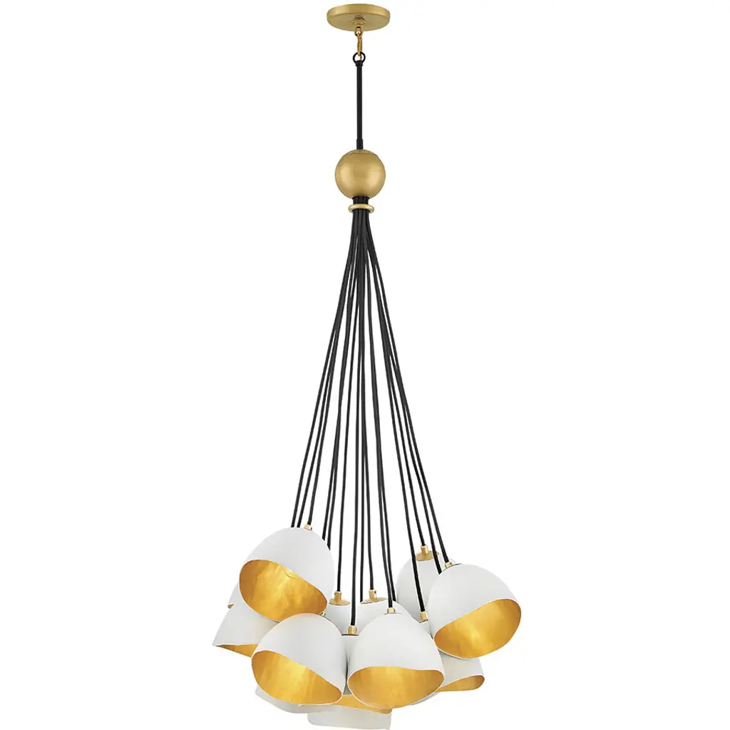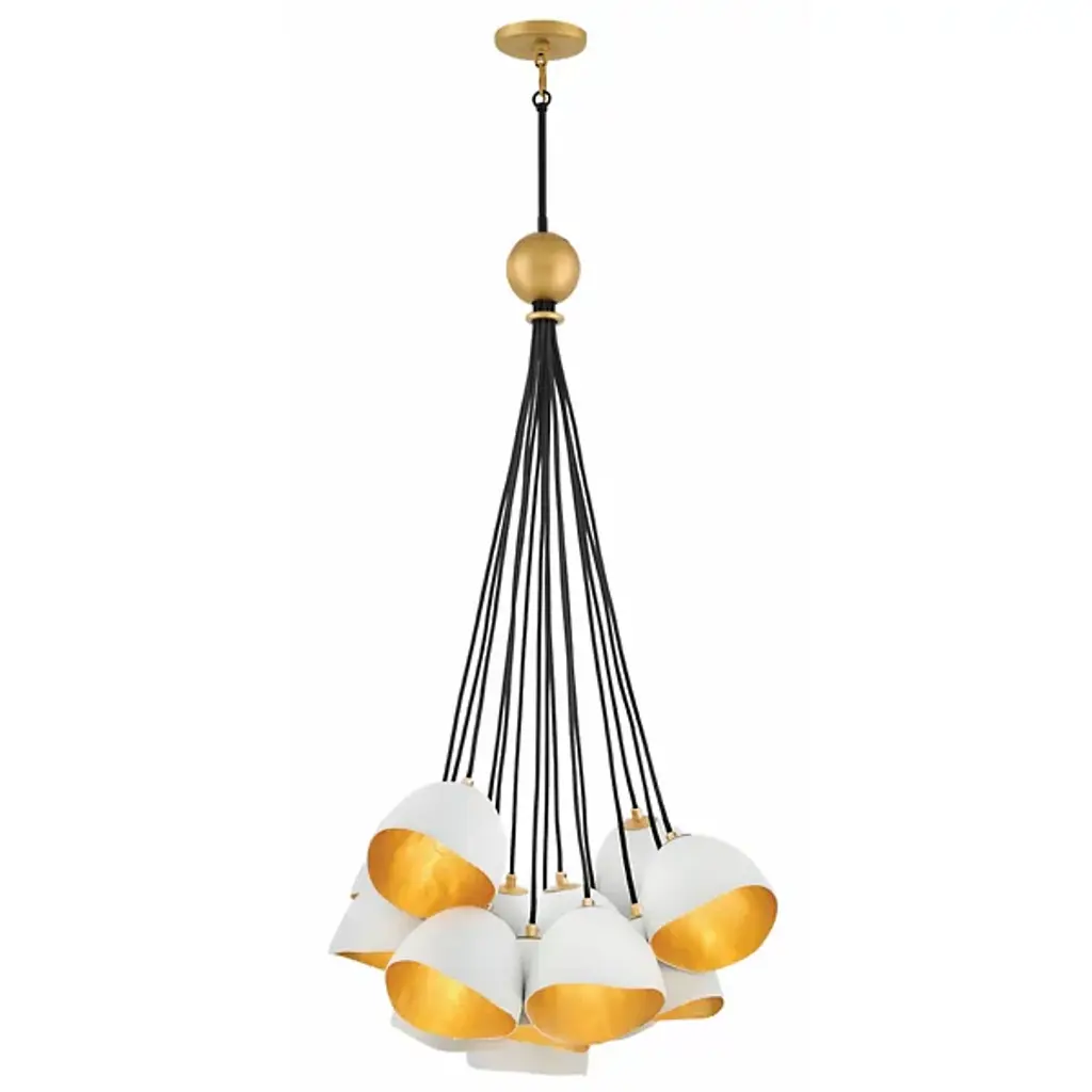 The Nula Chandelier from Hinkley is an innovative piece that is sure to dazzle your hip guests. The chandelier features 15 light fixtures, suspended in a radiant array that projects a wide span of brilliance into the environment below. Each of the fixtures is individually held by a single down rod, which can be adjusted for a custom hang from the canopy.