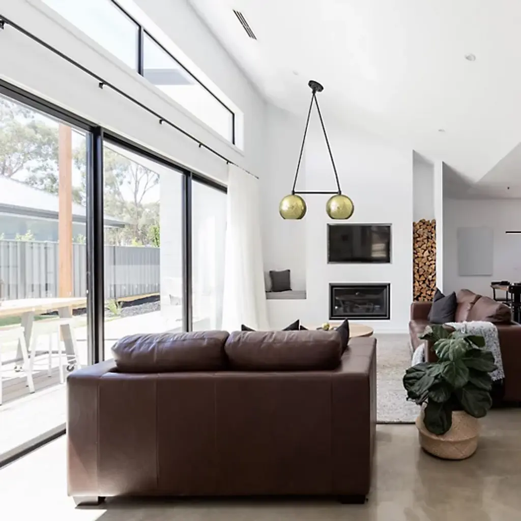 Bring warmth and light to your living spaces with the Nur Reversed Dual Globe Chandelier from Dounia Home. A contemporary construction with traditional accents, each piece of metalwork is locally-sourced and handcrafted by Moroccan artisans. A beveled-edge disc canopy holds two simple woven cables that descend to two metallic globe shades, kept separate by a minimalist metal stem. The globes are cut off at the bottom with a round opening for powerful downlight while geometric patterns and hand-punched pinholes in the sides provide a pleasant, old-style ambiance.