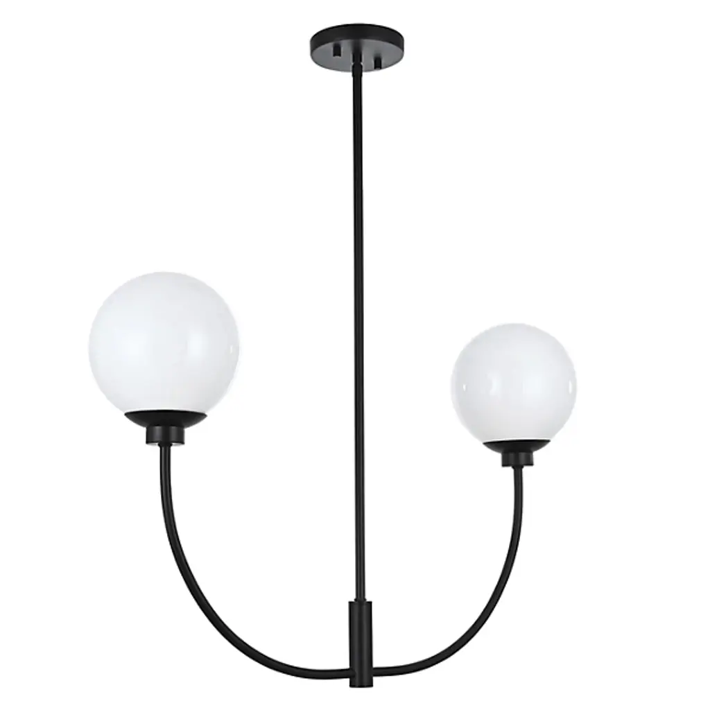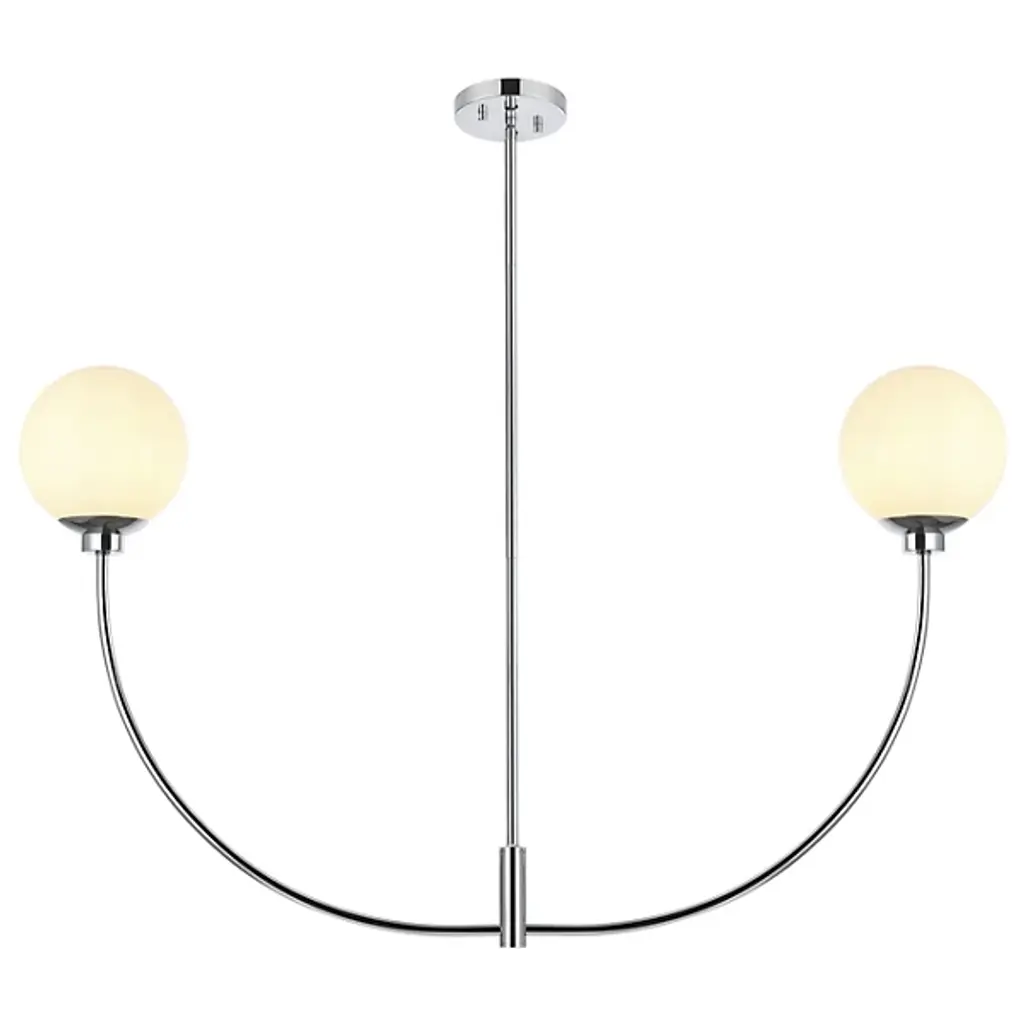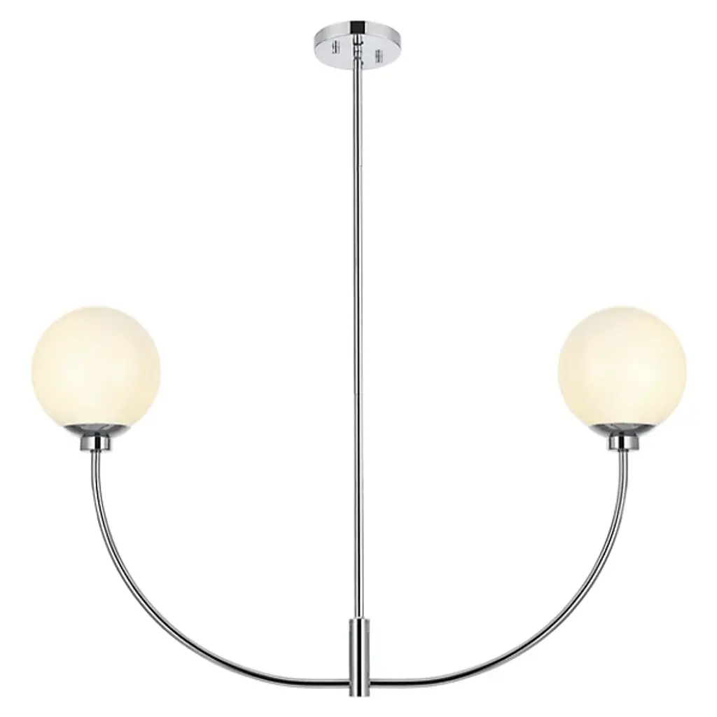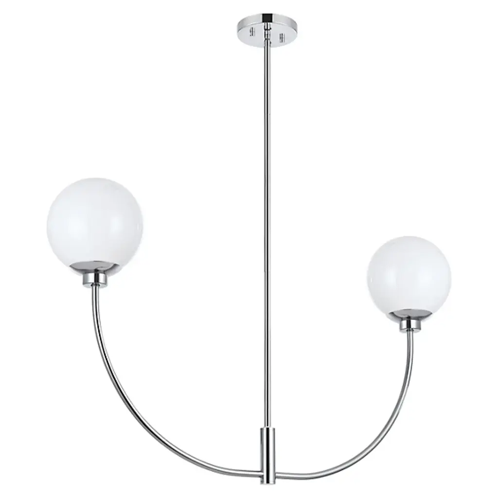 The Nyomi 2 Light Chandelier from Elegant Lighting is the tightrope walker of the lighting world—graceful, daring, and utterly captivating. This aerial artist of illumination performs a delicate balancing act with two frosted glass globes pirouetting on the ends of curved metal arms. With its adjustable hanging height, this chandelier can adapt to any space. It's a sculptural storyteller that will have your guests craning their necks and wondering if you've secretly installed a miniature modern art museum in your living room.