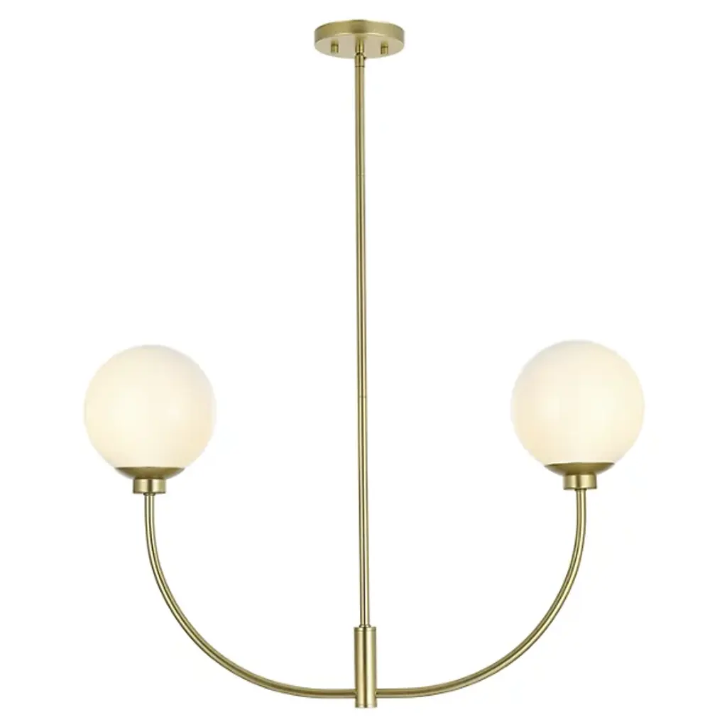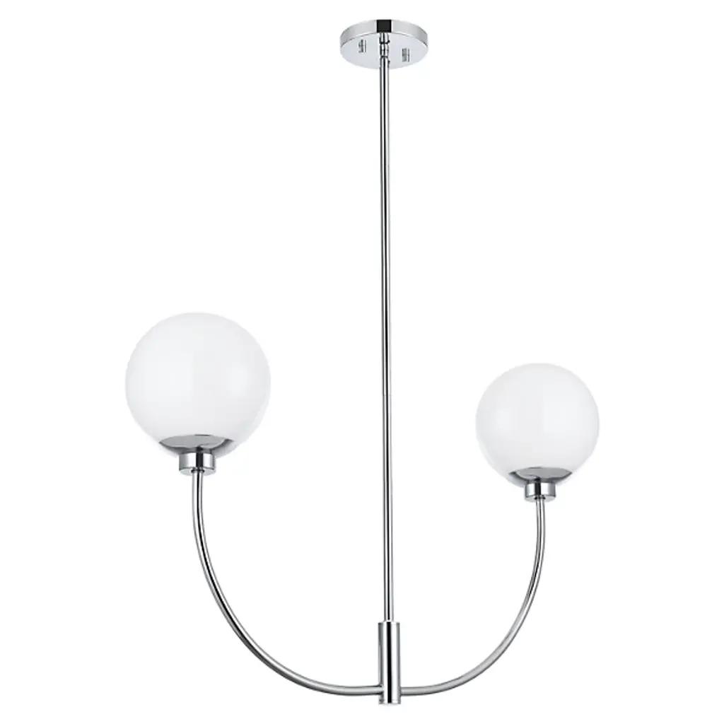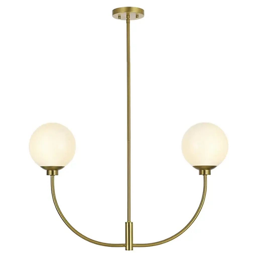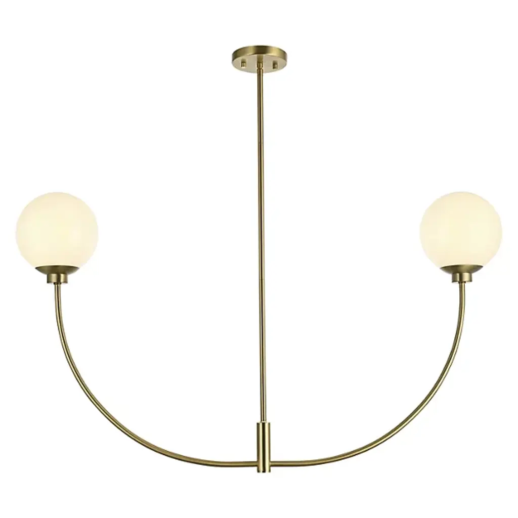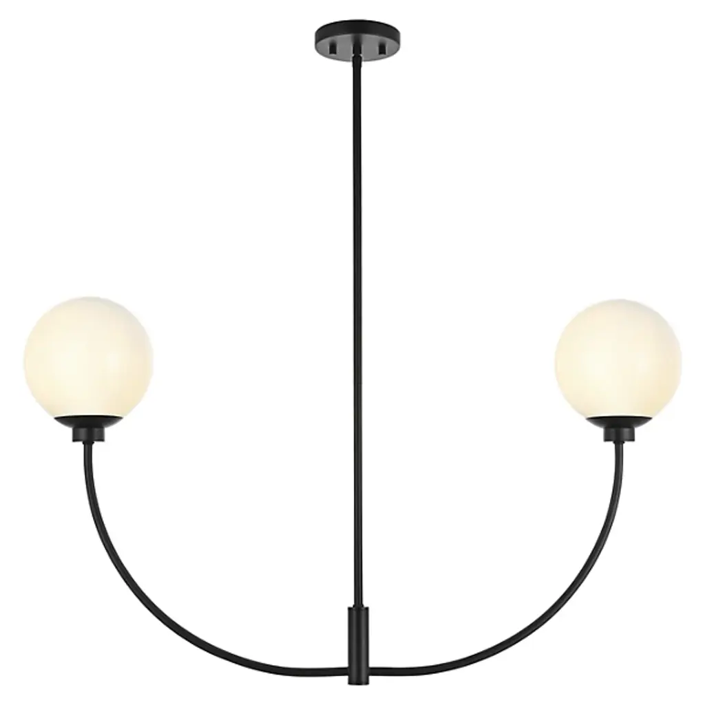 The Nyomi 2 Light Chandelier from Elegant Lighting is the tightrope walker of the lighting world—graceful, daring, and utterly captivating. This aerial artist of illumination performs a delicate balancing act with two frosted glass globes pirouetting on the ends of curved metal arms. With its adjustable hanging height, this chandelier can adapt to any space. It's a sculptural storyteller that will have your guests craning their necks and wondering if you've secretly installed a miniature modern art museum in your living room.