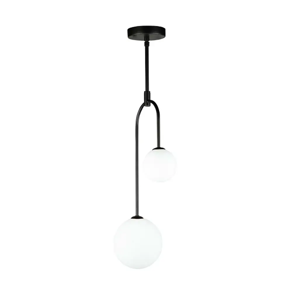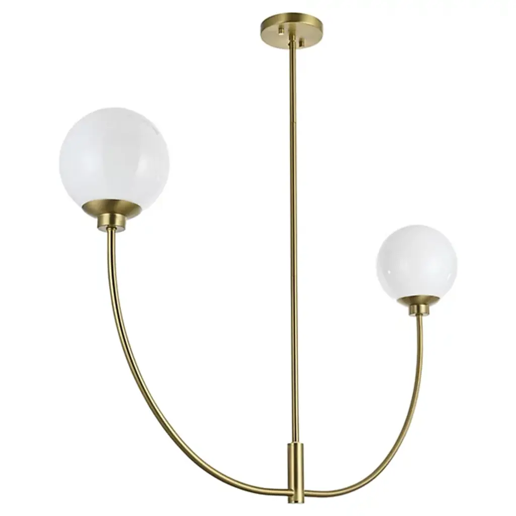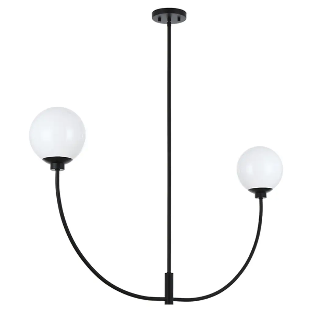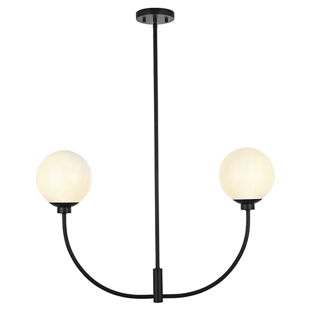 The Nyomi 2 Light Chandelier from Elegant Lighting is the tightrope walker of the lighting world—graceful, daring, and utterly captivating. This aerial artist of illumination performs a delicate balancing act with two frosted glass globes pirouetting on the ends of curved metal arms. With its adjustable hanging height, this chandelier can adapt to any space. It's a sculptural storyteller that will have your guests craning their necks and wondering if you've secretly installed a miniature modern art museum in your living room.