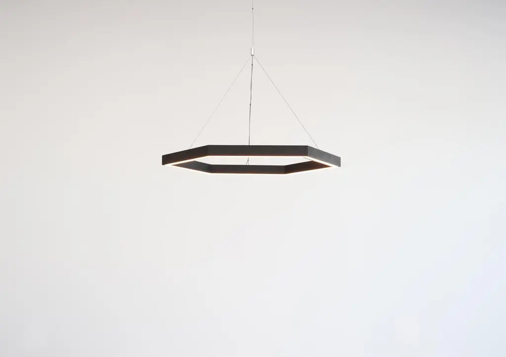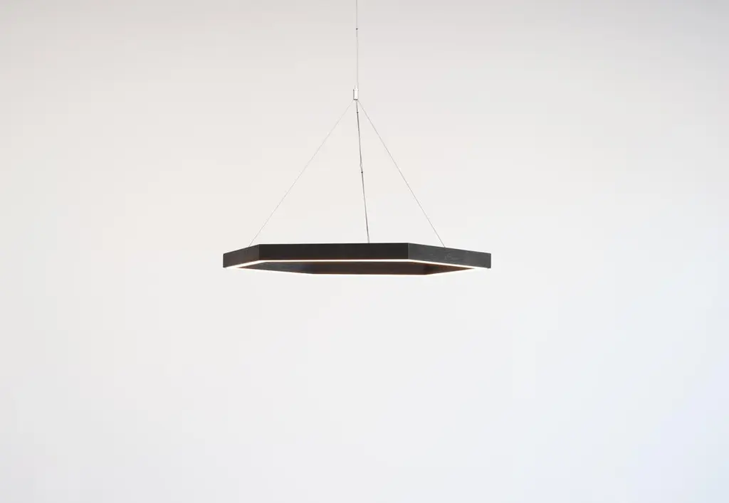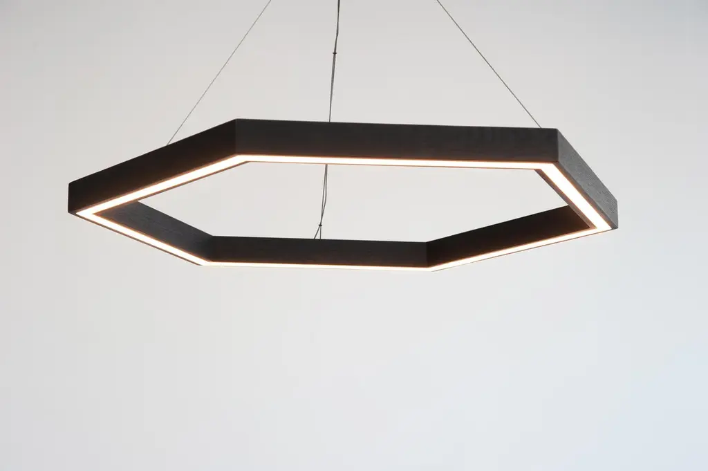 Oak large Hexagon chandelier by Hollis & MorrisDimensions: 40" x 35"Materials: Solid wood, hardwax oil. LED lights. Suspension Hardware. Also available in natural oak, black oak, white oak, and walnut. All our lamps can be wired according to each country. If sold to the USA it will be wired for the USA for instance.Celebrating the ordered beauty and iconic shape of a beehive honeycomb. The chandelier's more substantive solid wood frame supports its grander scale and lends to its striking yet whimsical presence.Based out of Toronto, Hollis & Morris takes its name from an intersection in Halifax where the company started as a series of garage explorations in design. A steadfast commitment to function with a distinctive approach to design. Hollis & Morris creates handmade furniture and lighting which carefully balances modern and honest designs. Versatile, well crafted, and timeless. Pieces by Hollis & Morris easily complement residential, commercial, and hospitality spaces. Driven by respect towards natural and honest processes, trademark integrations of solid wood and metal celebrate the inherent strengths of each material, resulting in thoughtful, quality pieces made to last with you throughout the years.