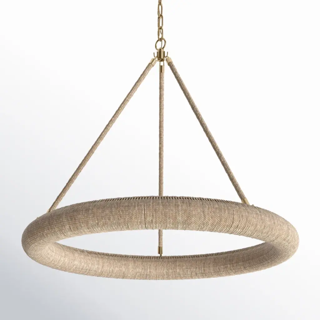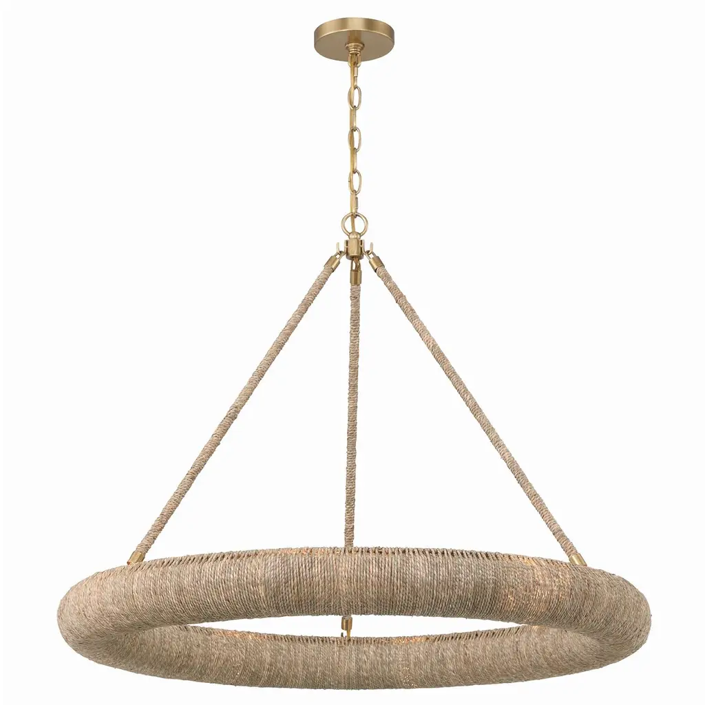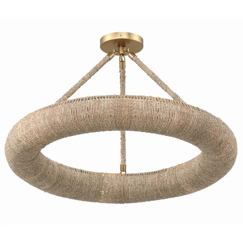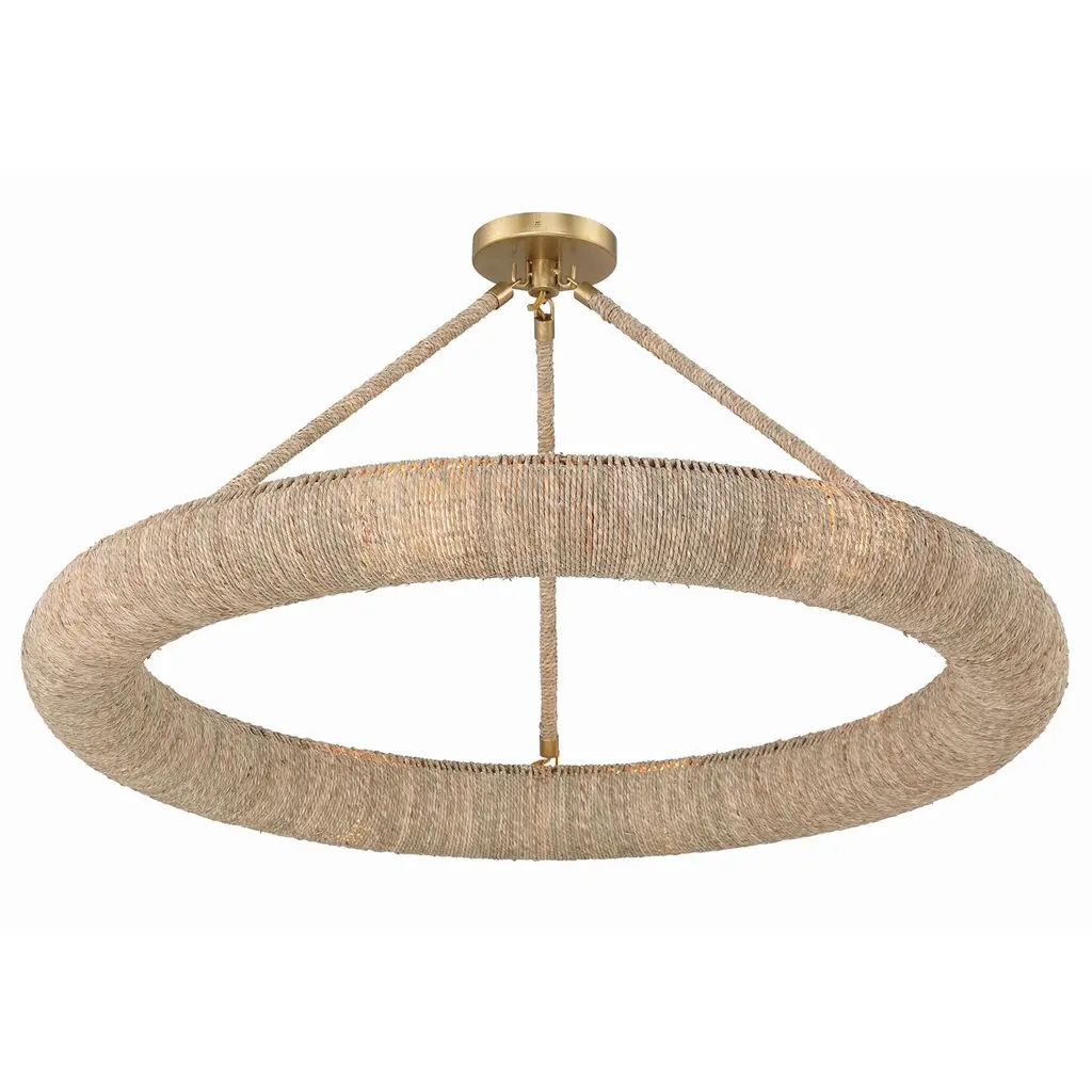 Elevate your space with the Oakley ring chandelier, an artisan masterpiece that blends natural charm with exquisite craftsmanship. With its open-top design, this chandelier infuses a room with a soothing and relaxed ambiance, directing light upward while casting a soft, filtered glow downward. This fixture showcases intricate hand-wrapped details that add depth and character, reflecting the essence of skilled artisans. With dual mounting options, it effortlessly adapts to any space.