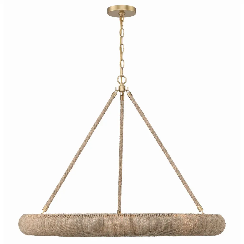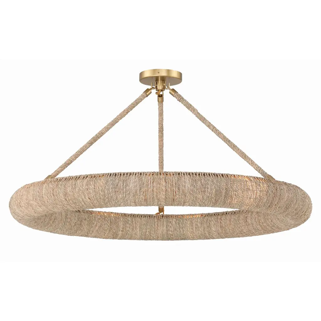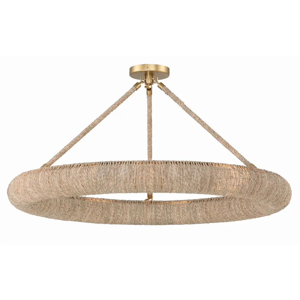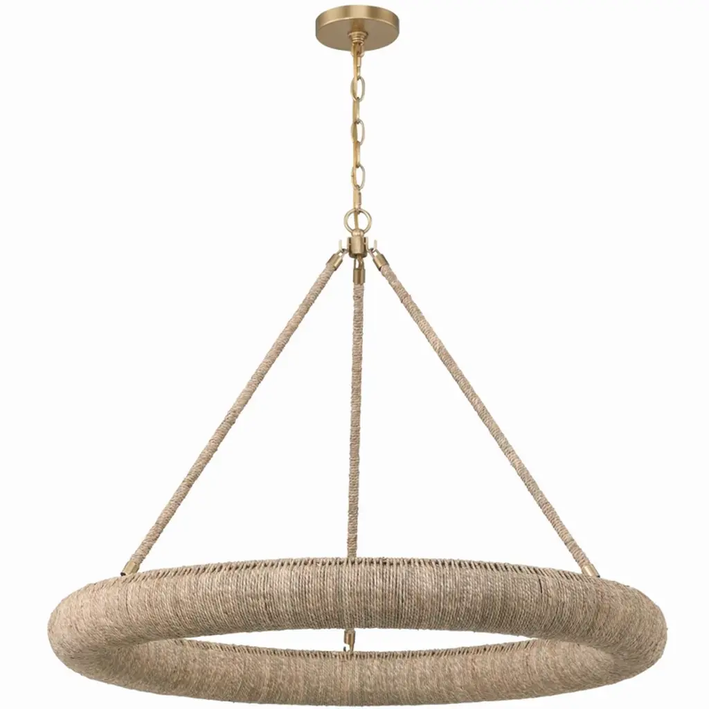 Elevate your space with the Oakley ring chandelier, an artisan masterpiece that blends natural charm with exquisite craftsmanship. With its open-top design, this chandelier infuses a room with a soothing and relaxed ambiance, directing light upward while casting a soft, filtered glow downward. This fixture showcases intricate hand-wrapped details that add depth and character, reflecting the essence of skilled artisans. With dual mounting options, it effortlessly adapts to any space.