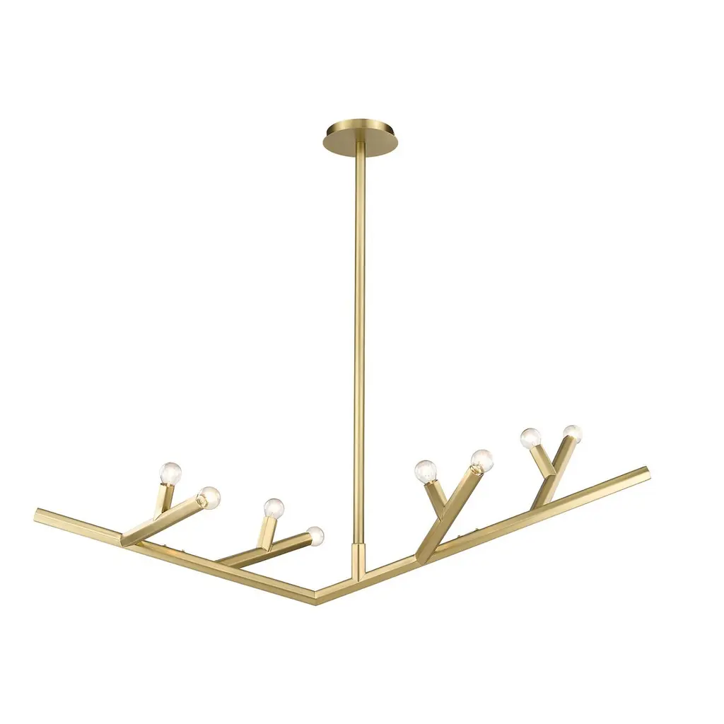 The Oaks Collection chandelier combines angular lines and branch-like shapes to create a striking, contemporary design. Its sleek, geometric styling brings a sense of casual sophistication, making it a bold yet elegant statement piece for any space.