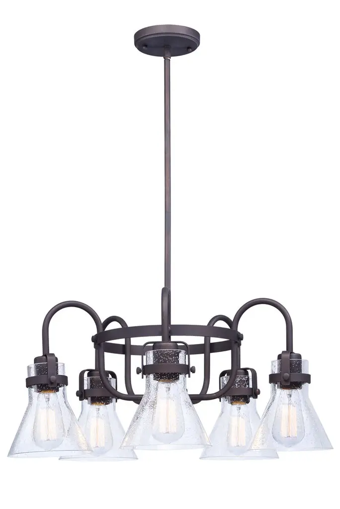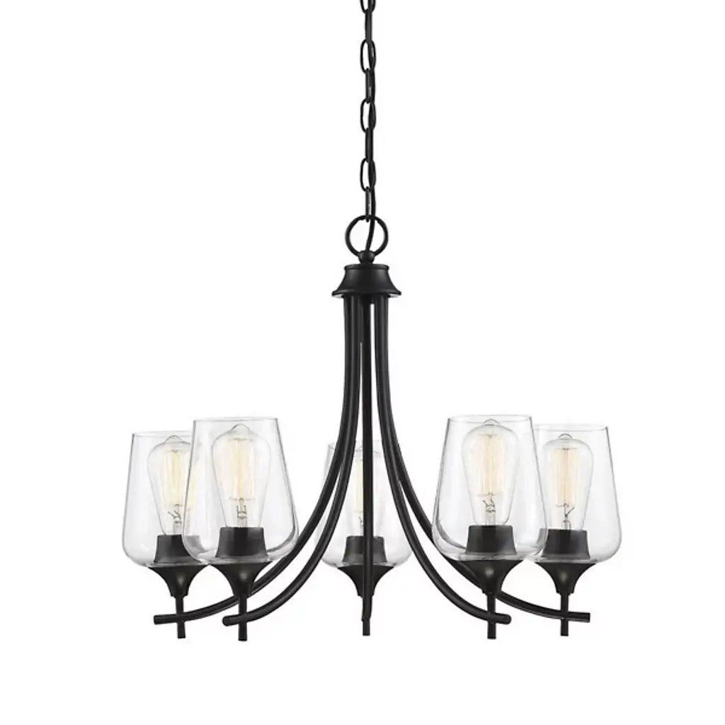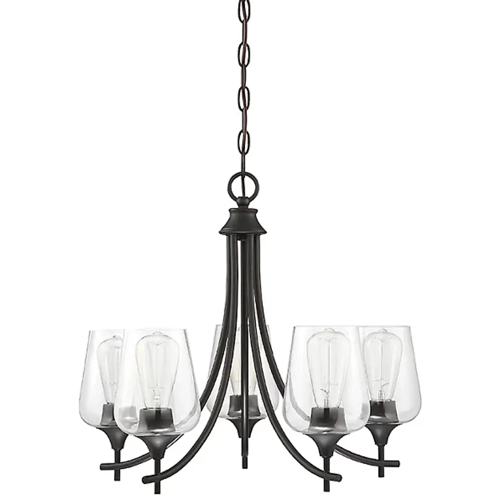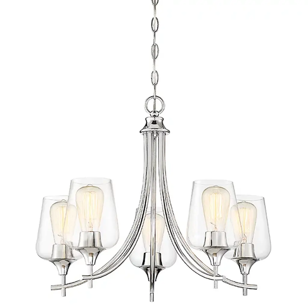 Grace and elegance exude from the Octave Chandelier by Savoy House. With its sleek detailing and beautifully-crafted curved shades of clear glass, this chandelier coordinates wonderfully with upscale décor schemes and would make a lovely centerpiece to a dining area or living space. A variety of light and finish choices are also available in the Octave collection, so you can choose what best suits your established motif and room size.