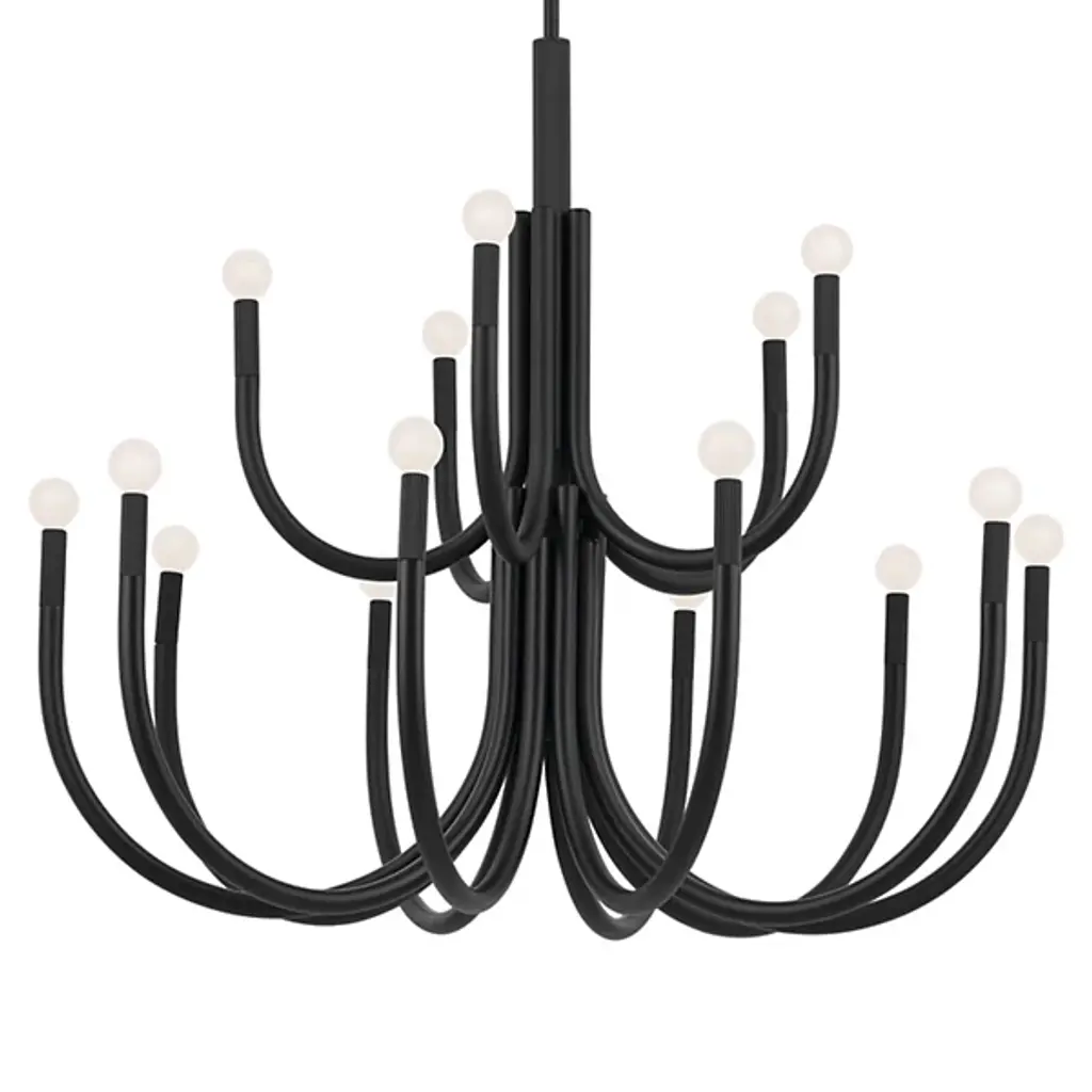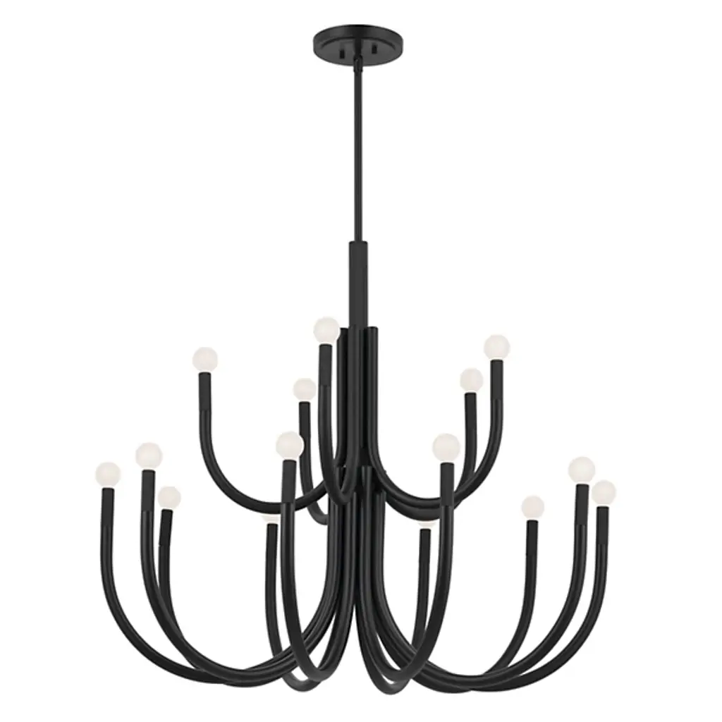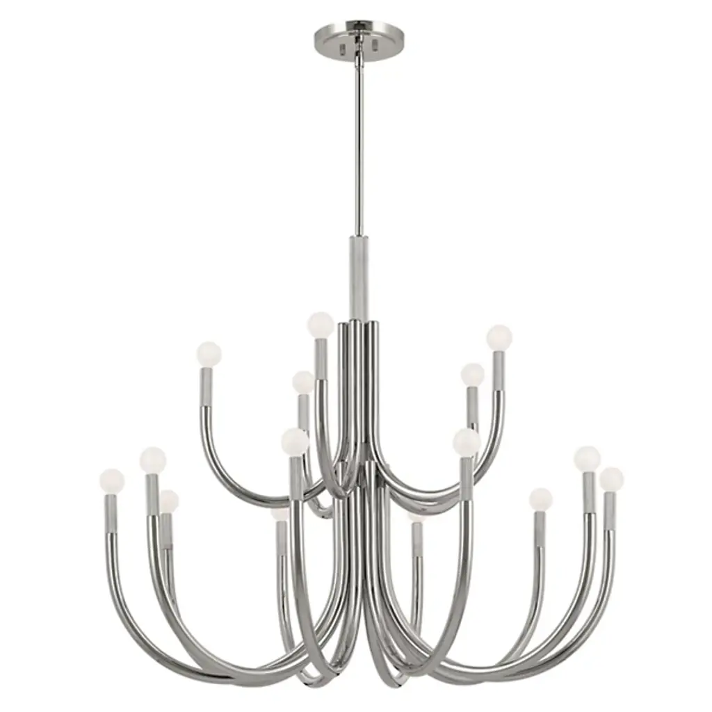The Odensa 2-Tier Chandelier by Kichler features a clean, cascading design that adds a touch of luxury to any living space. Its soft curves, stacked-column detail, and smooth appearance make it a soft modern beauty. On-trend and refined, it features bold curved tubing, fluting under each bulb to provide 360 degrees of warm ambient lighting.