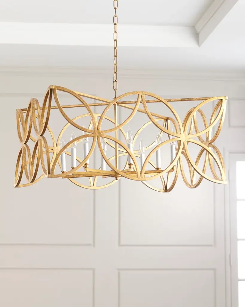This gold, eight light chandelier by Old World Design is sure to elevate the design of any room!