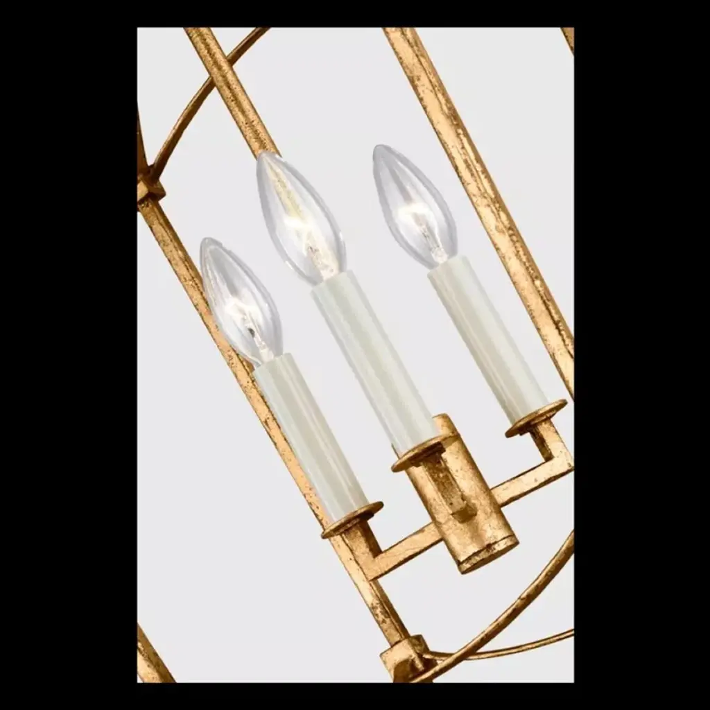 Bold illumination. This 3-light chandelier wows with its distinctive silhouette. An open steel frame with a distressed finish with candle-style lights. Three bulbs are sold separately and compatible with dimmer switches to move seamlessly from day to night. Plus, a height-adjustable chain downrod and sloped ceiling compatible canopy make it a fit for any room.