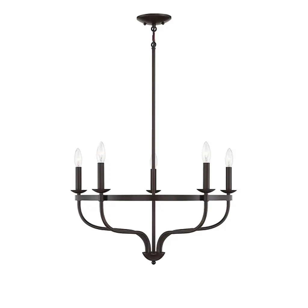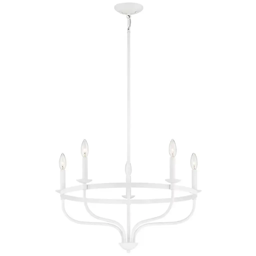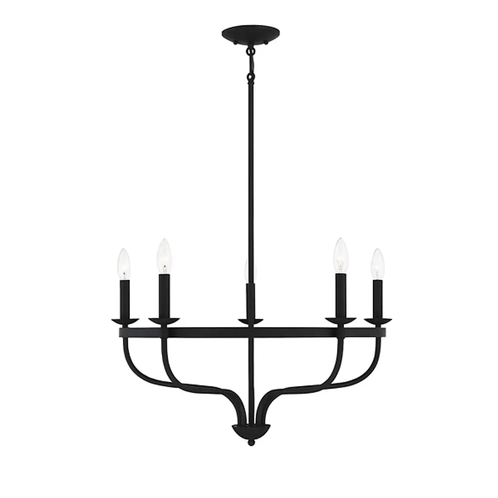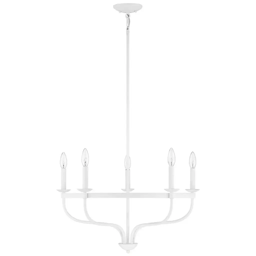 Brighten up your indoor areas with the Olivia Chandelier from Alder & Ore. A clean-surfaced mix of contemporary style and transitional substance, it’s anchored by a smooth metal canopy and uses a short chain link to extend a single downrod from above. This single stem ends in a rounded finial, which then extends a series of curved arms upward, each of which blooms a single, candelabra-style lamp secured along the outside of a single round ring. The open lamping blazes out from above, burnishing the metalwork while distributing a bright, even ambiance around the fixture.