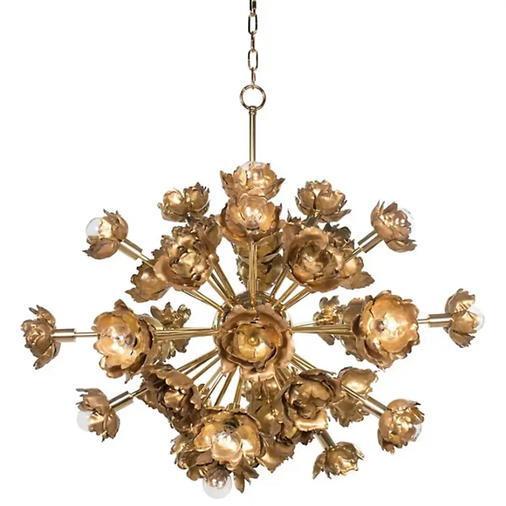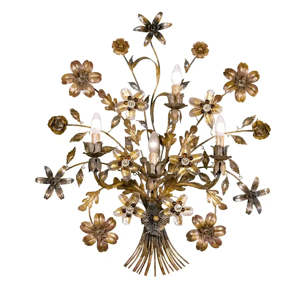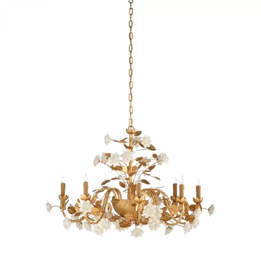 One Of Two French Gilt Metal Chandeliers With Porcelain Flowers