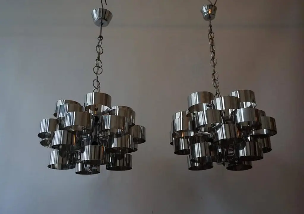 One Of Two Italian Chrome Loop Chandeliers By Sciolari